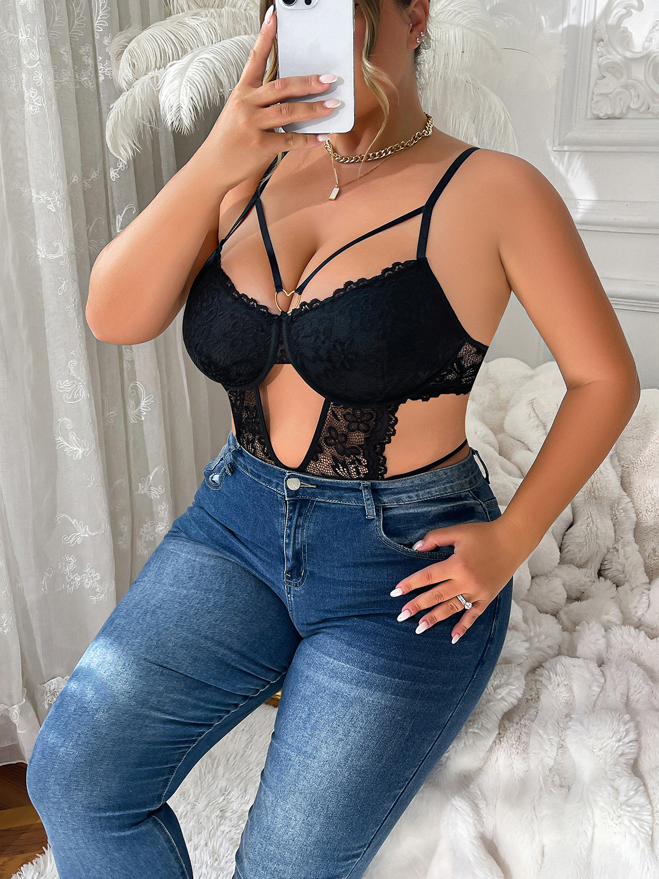 Europa y los Estados Unidos nuevos huecos negros sexy encaje perspectiva transfronteriza Amazon gran tamaño interior de anillo de acero camiseta ropa interior