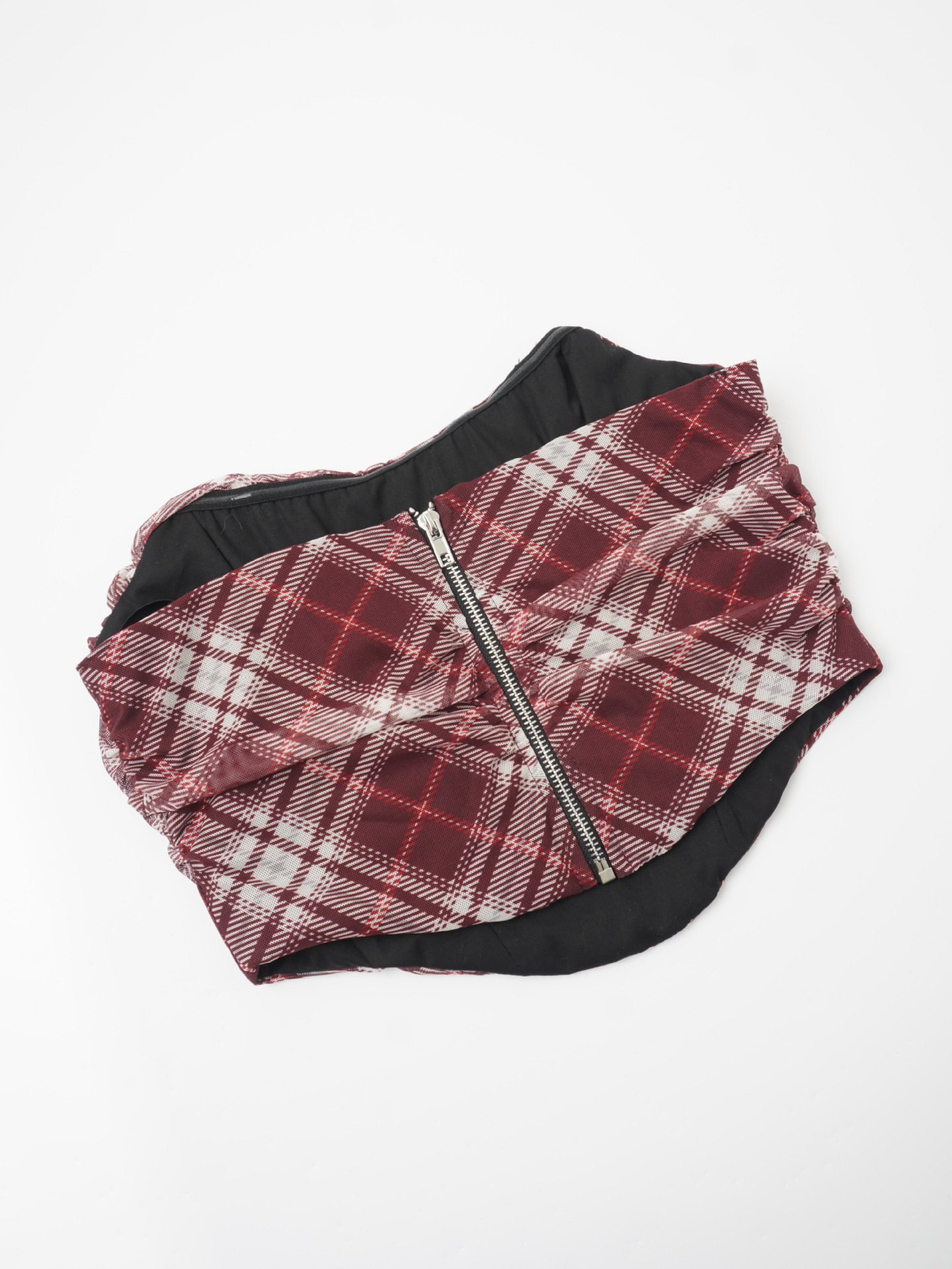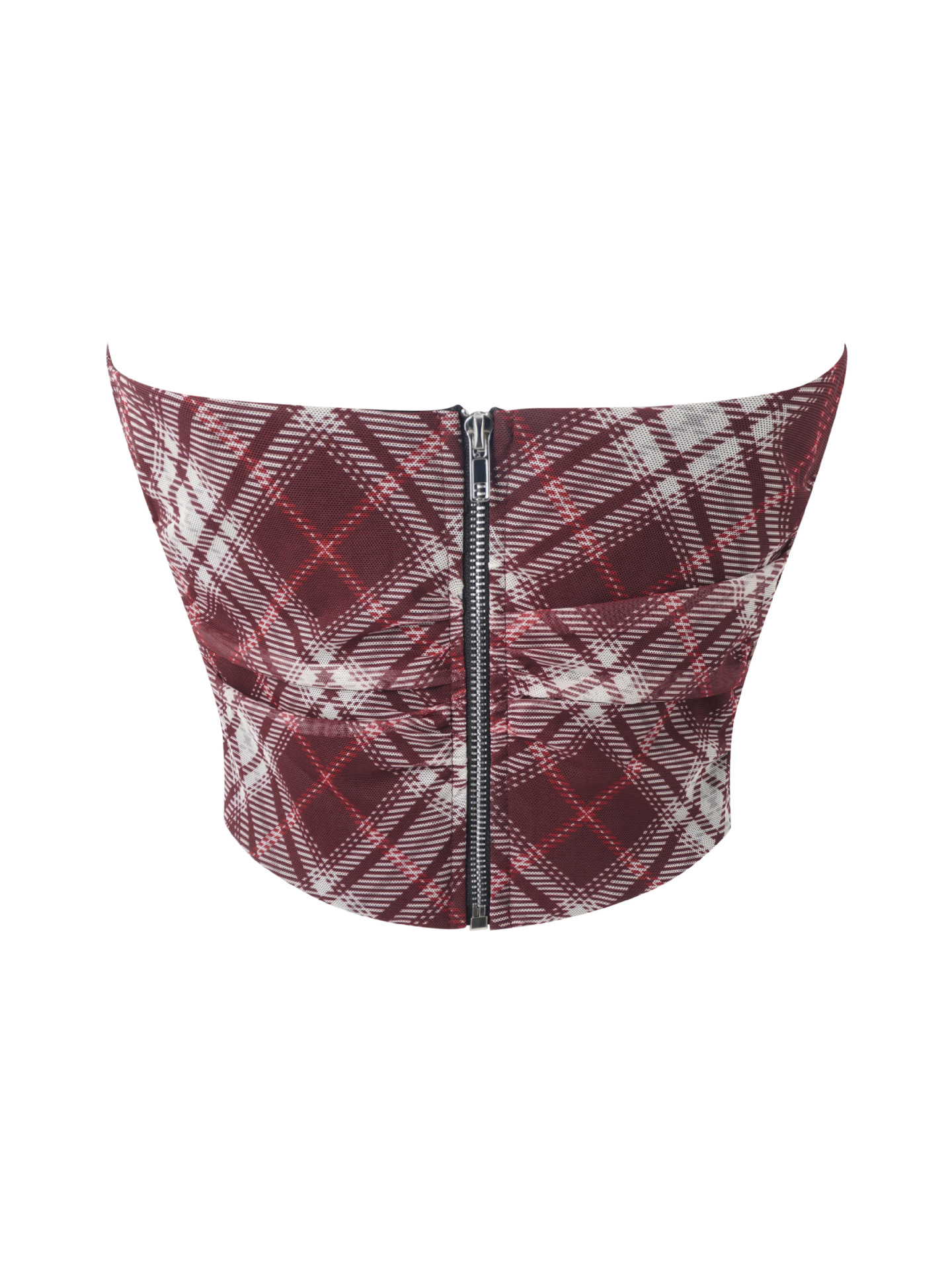 Nueva parte superior de tubo con cremallera trasera de malla a cuadros europea y americana, sin almohadilla para el pecho, top moldeador de huesos de pescado, fuente de comercio electrónico transfronterizo