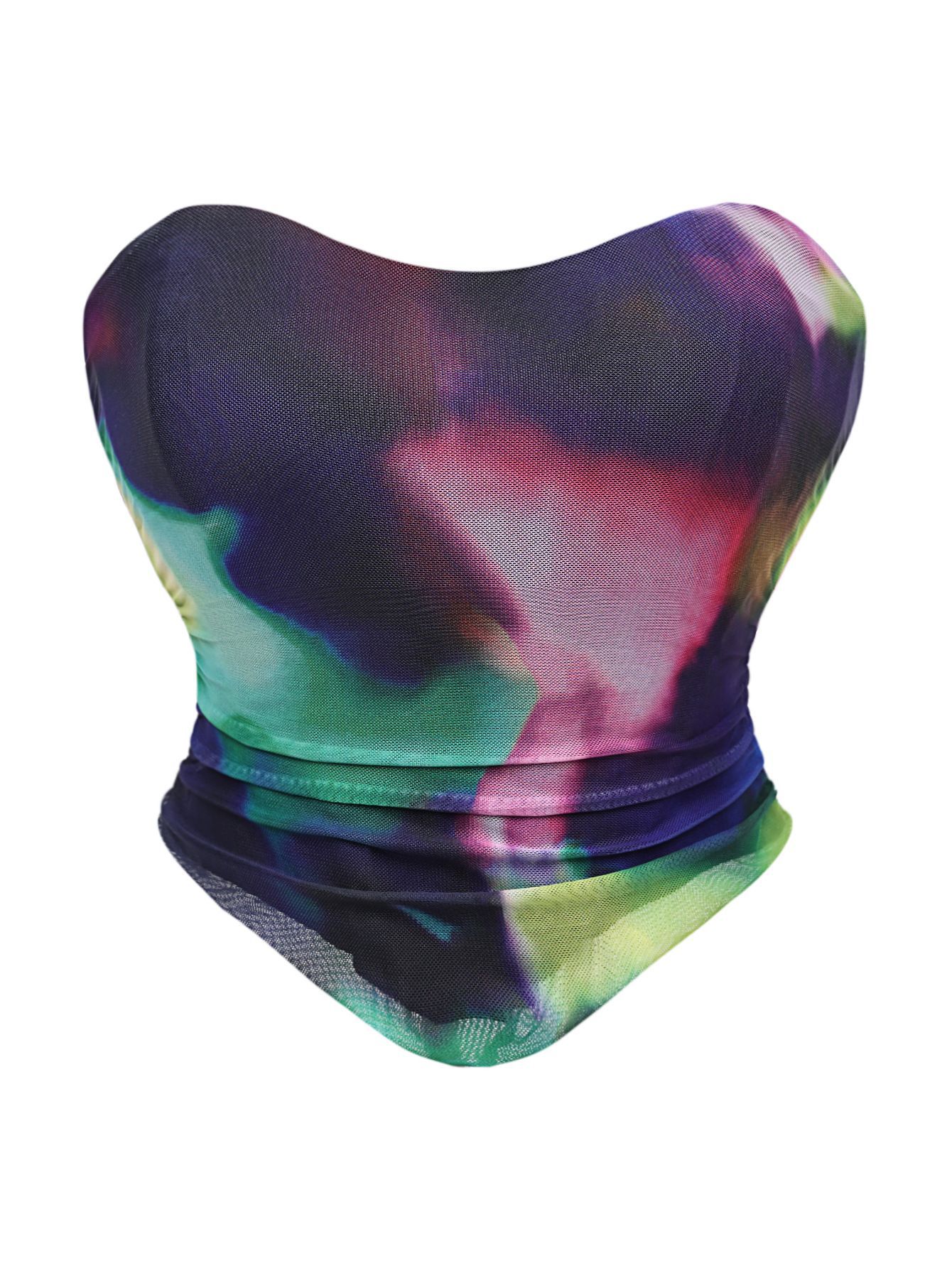Color brillante, malla transpirable elástica, soporte de pecho sexy sin correa de hombro, chaqueta impresa, suministro transfronterizo Aliexpress