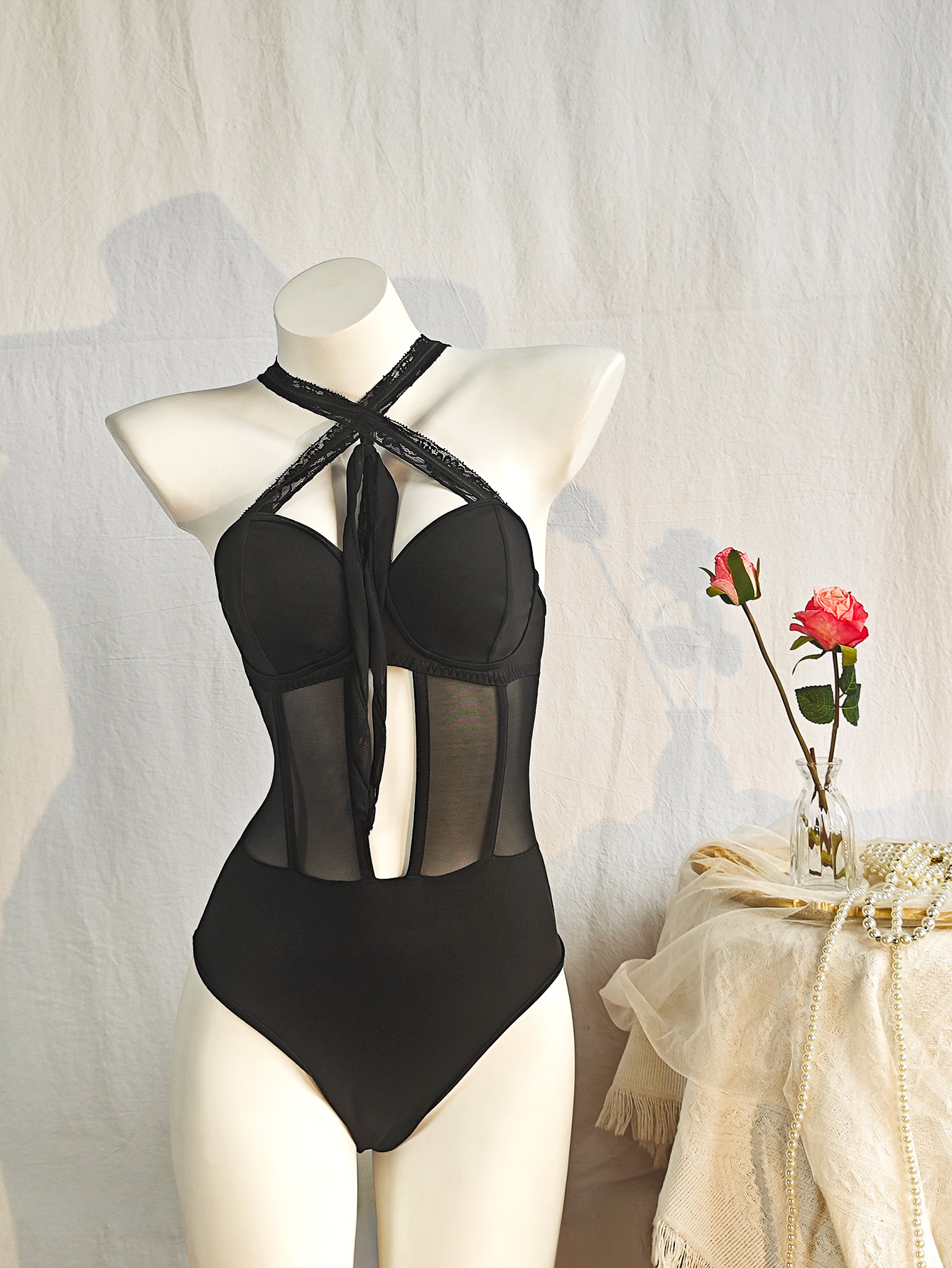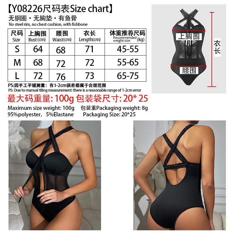 Transfronterizos europeos y estadounidenses sexy ropa interior correa hueca Amazon negro explosivo tela en forma de hueso de pescado camisa