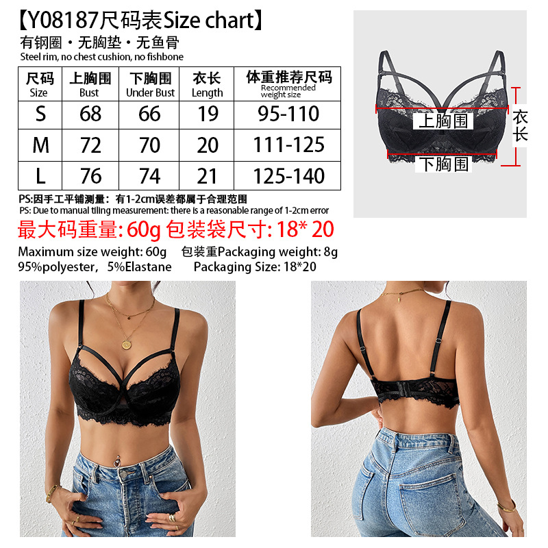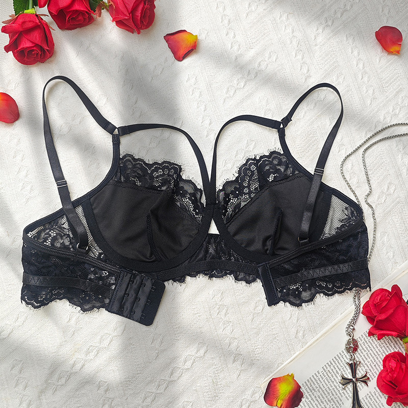 Ropa interior de encaje sexy de comercio exterior europeo y americano, anillo de acero de encaje ultrafino y transpirable, sujetador de chica caliente hueco, ropa interior tipo chaleco