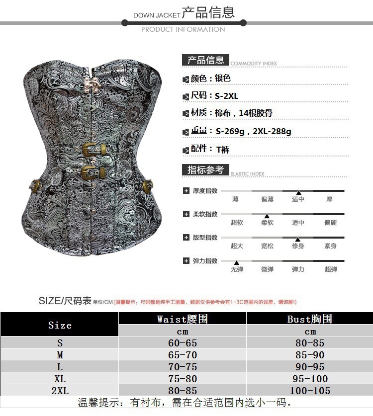 Corte gótica corset de acero botón plateado impresión cintura corset de belleza eBay / Amazon