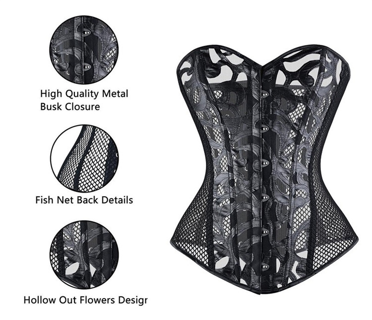 Impresión negra tela de malla vacía sexy corte europea y americana corset Aliexpress soporte de distribución