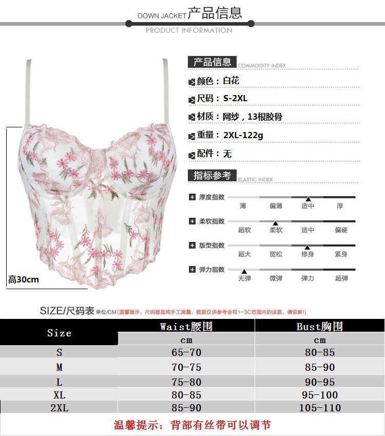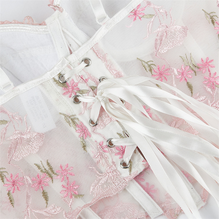 Verano cinturón de hombro malla transpirable bordado patrón de mujer perspectiva sexy busto plástico suministro transfronterizo