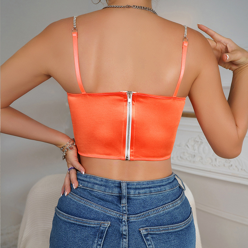 Nuevo nicho plisado sexy cuello bajo rhinestone cintura adelgazamiento Sling BRA Europa y América chica caliente corto chaleco superior para las mujeres
