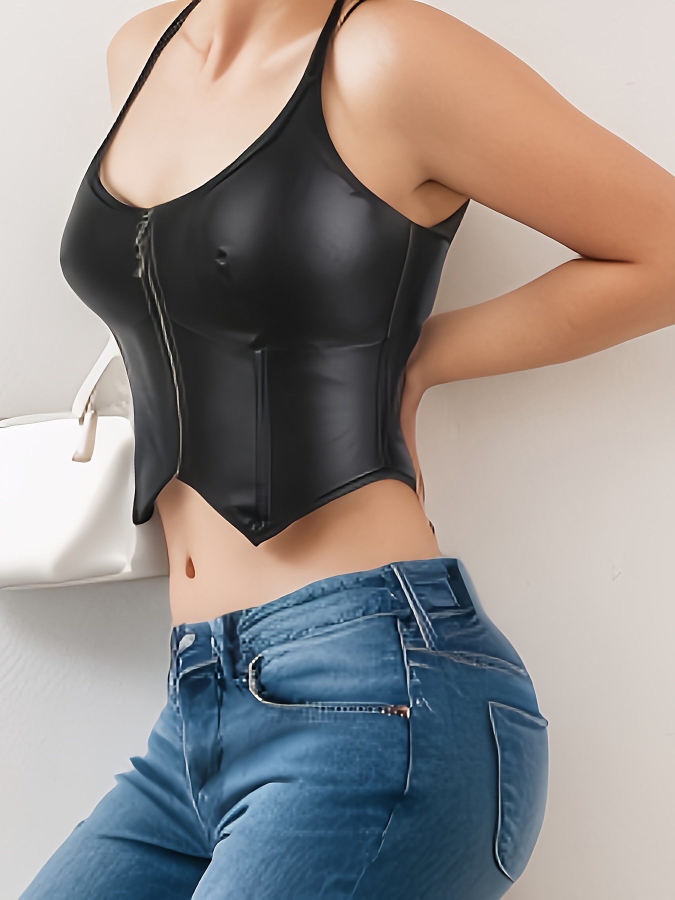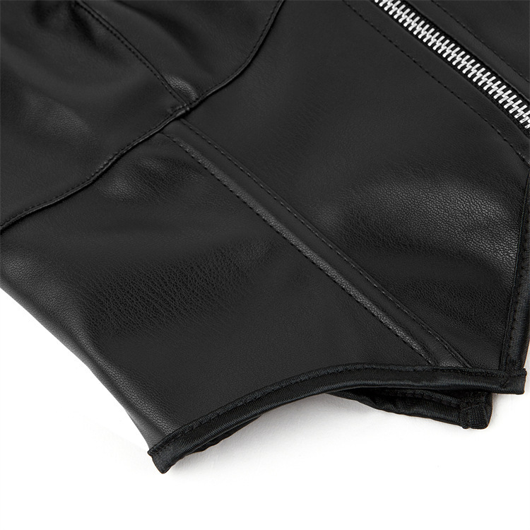 Europa y los Estados Unidos cuello de cuero PU cremallera delgada pectoral sexy plástico chaqueta Amazon venta rápida temu suministro transfronterizo