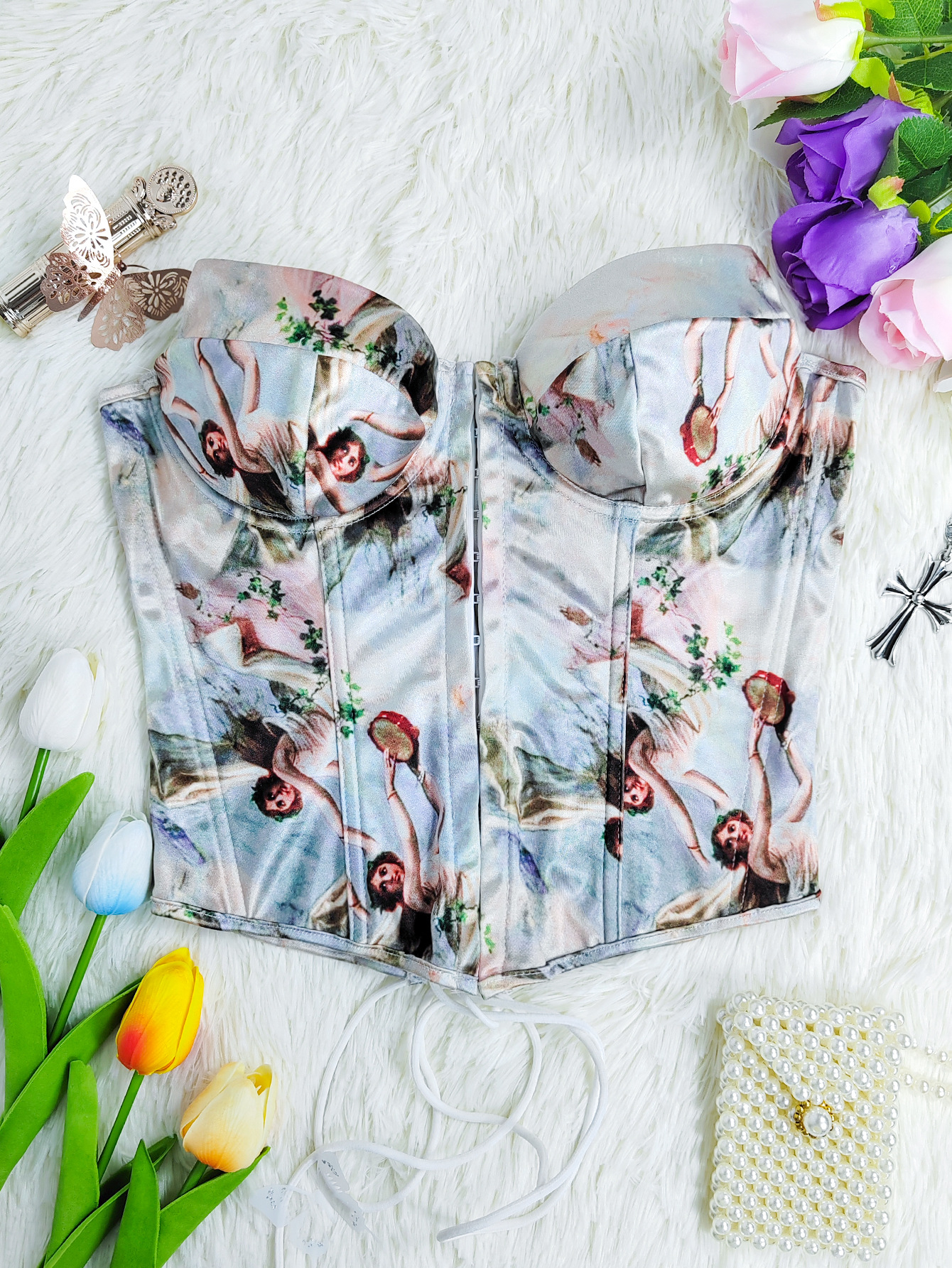 Verano de alta gama impreso breasted acero anillo Fishbone tubo superior Correa nueva caliente chica ins sexy envuelto pecho Delgado desgaste exterior