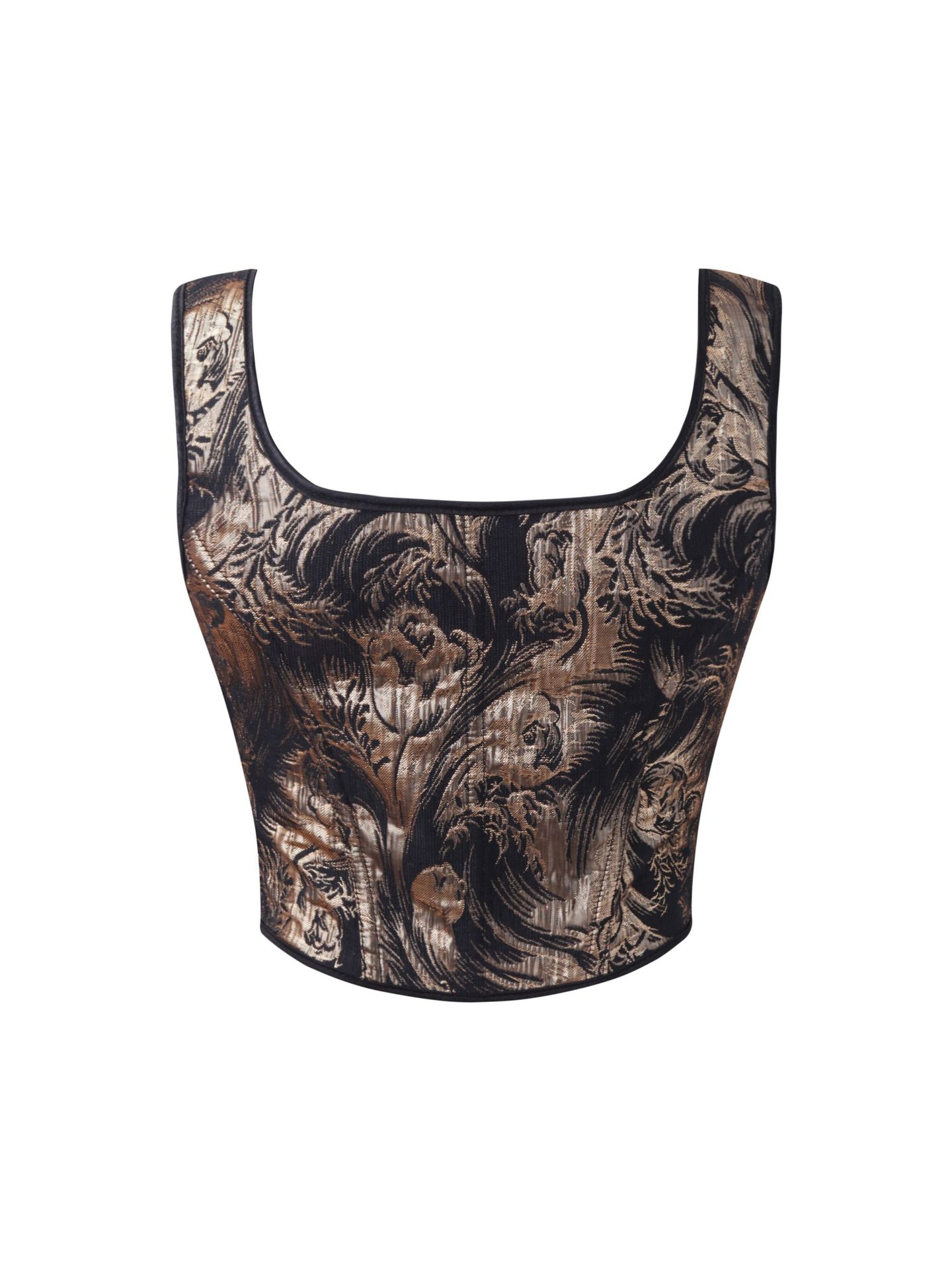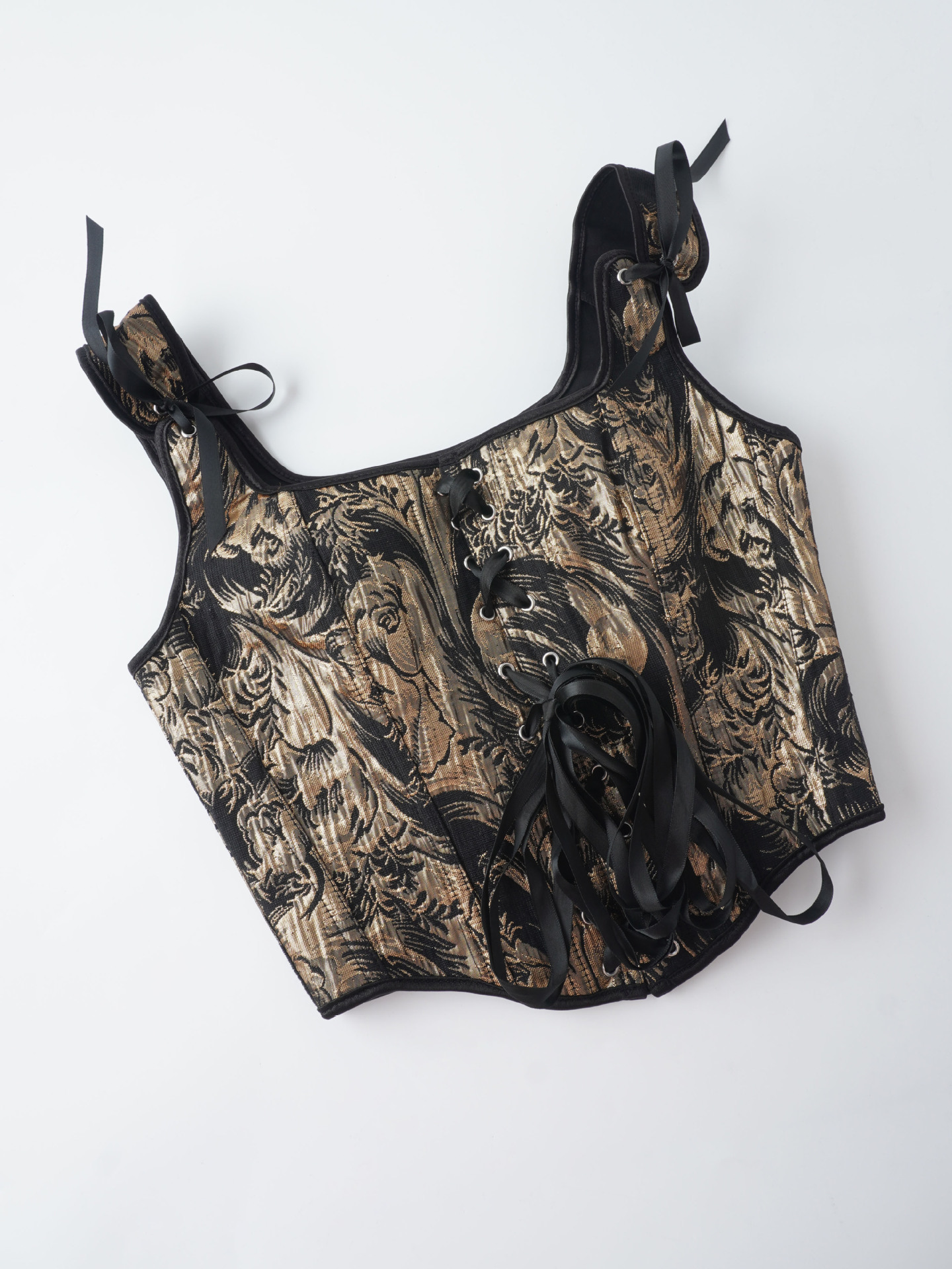 Nuevo dorado negro impresión dorado correa de hombro arco damas para limpiar el pecho soporte de pecho sexy camisa de forma apretada transfronteriza