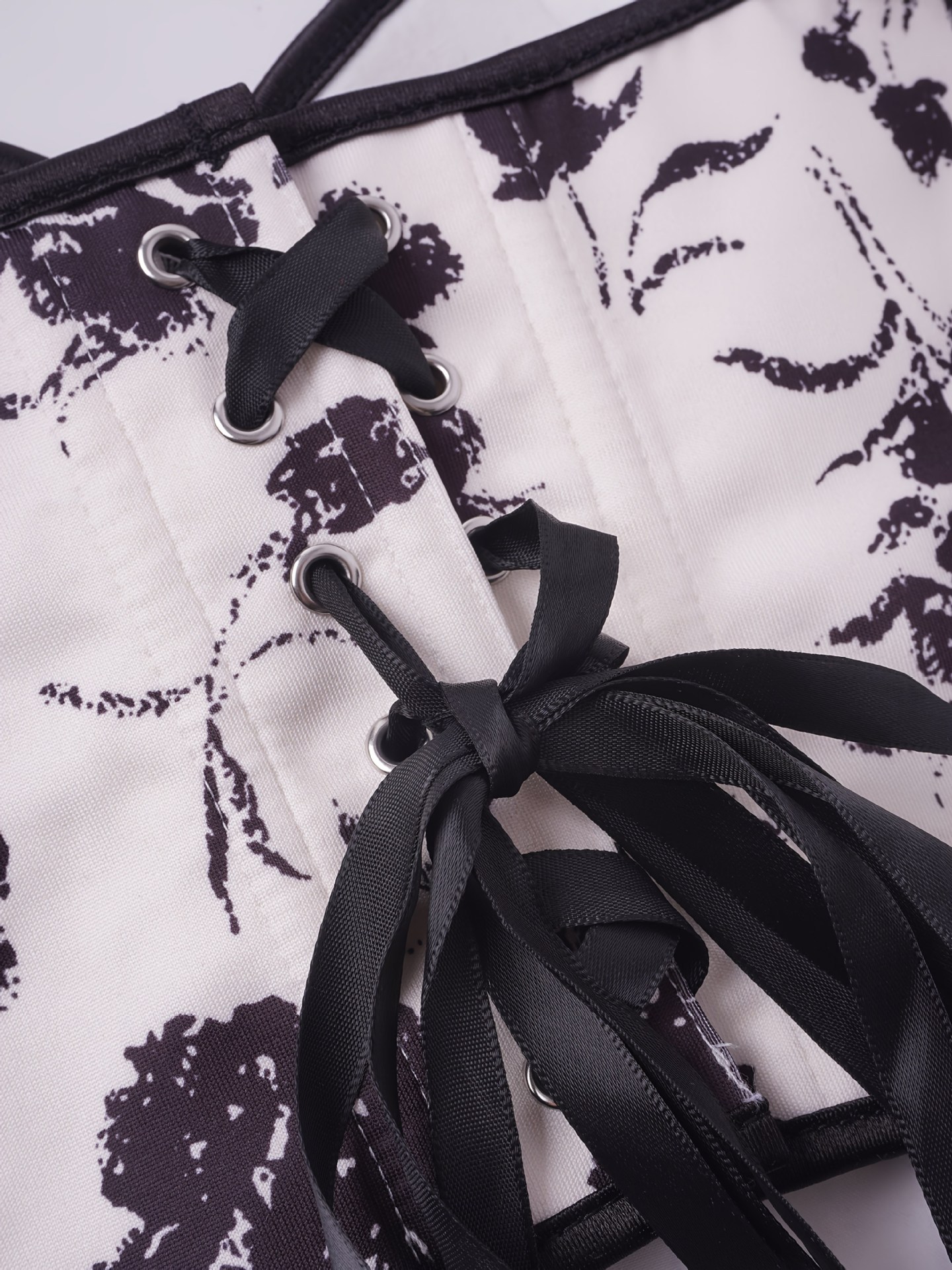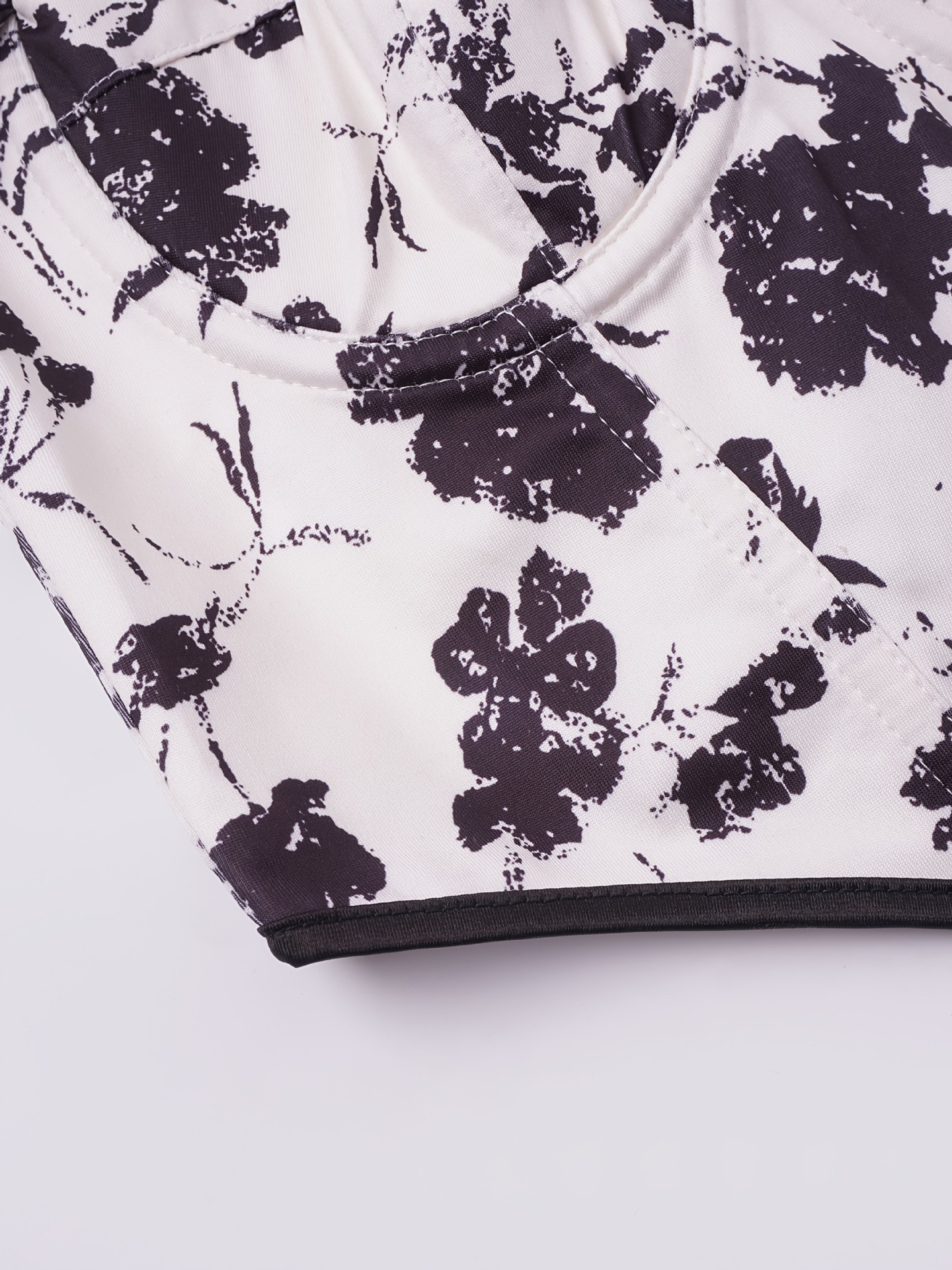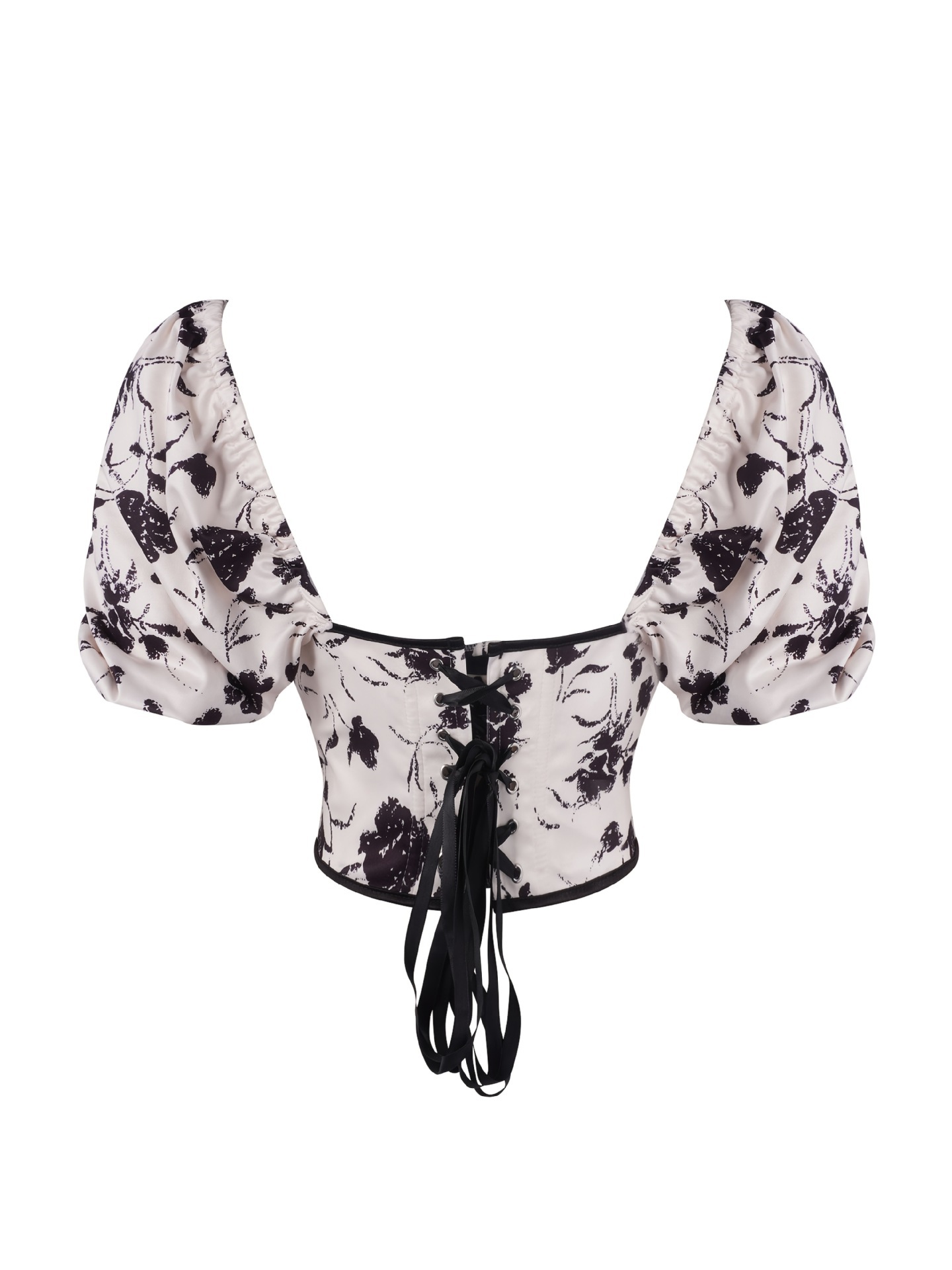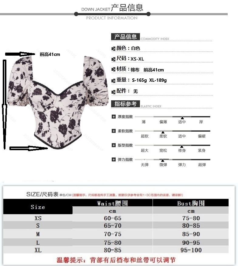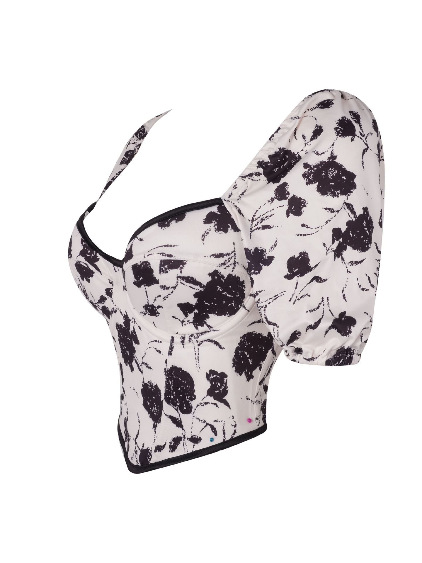 Nuevo retro tinta impresión de manga corta ropa de cuerpo de mujer de verano cintura delgada manga burbuja suministro transfronterizo