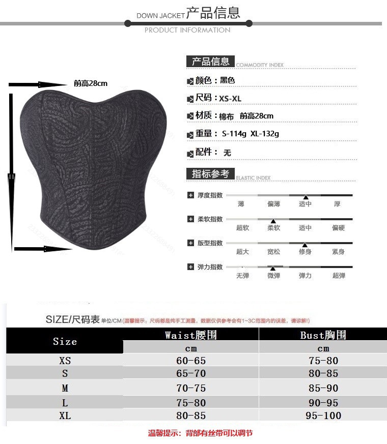 Negro retro palacio viento tocando pecho soporte de pecho cintura apretada cintura damas plástico fábrica de suministro directo