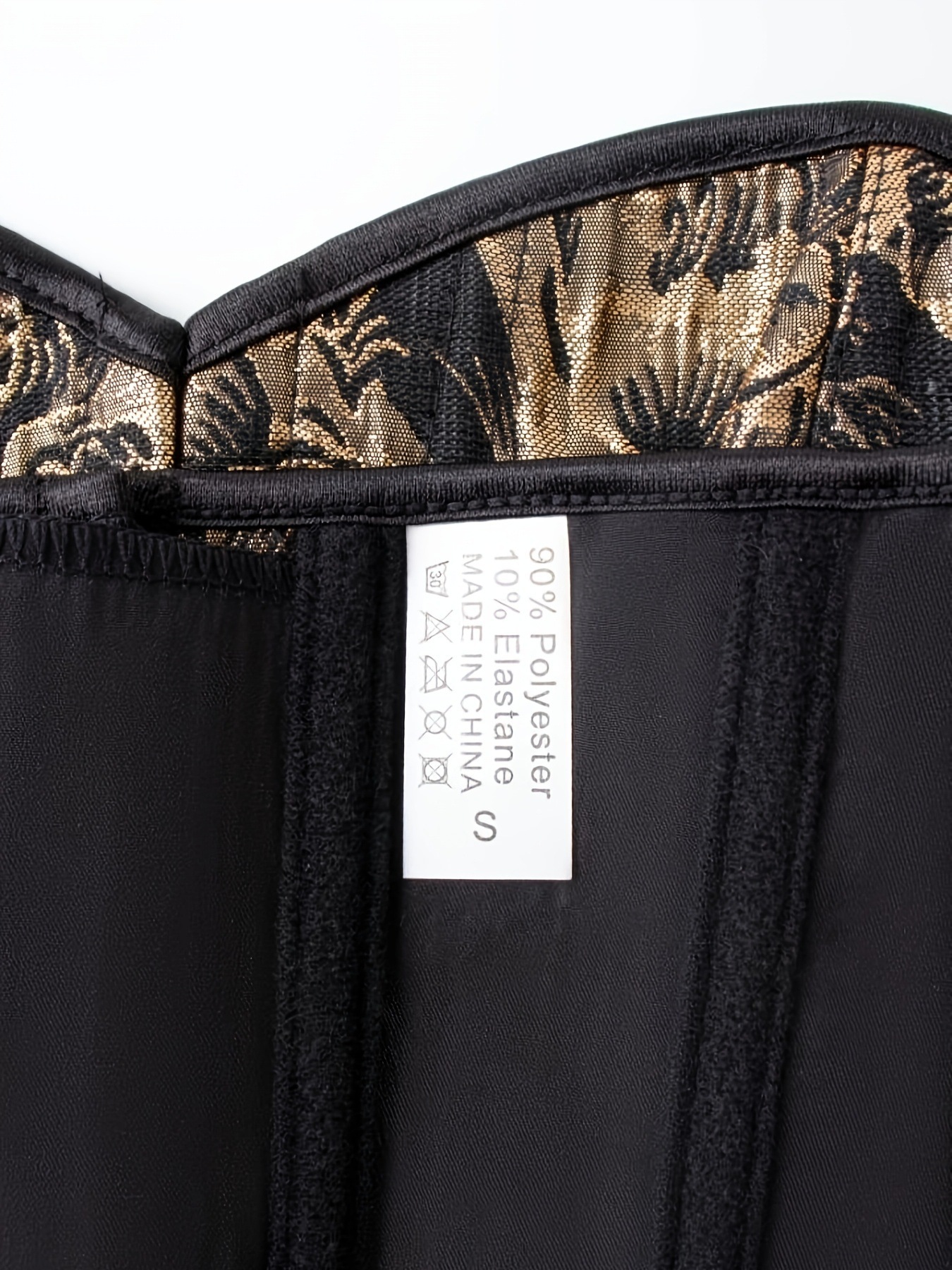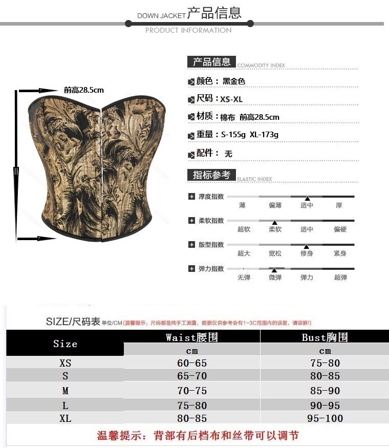 Europa y América negro oro retro impresión delantera hebilla trasera apretada pechos cerrados abdomen corte damas vestimenta
