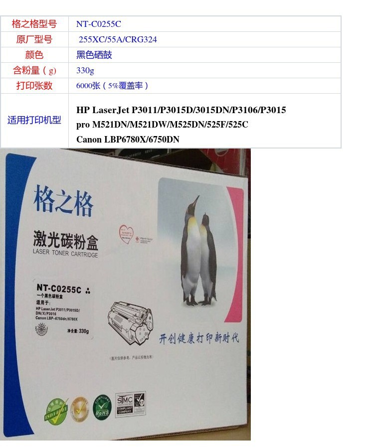 Cartucho de tóner NT-C0255C Gizhige para HP CE255A p3015dn p3016 p3011 M521
