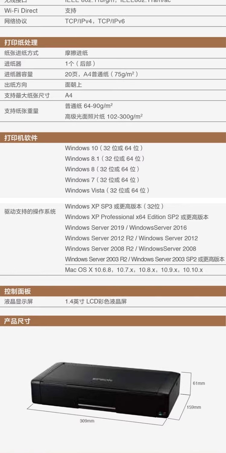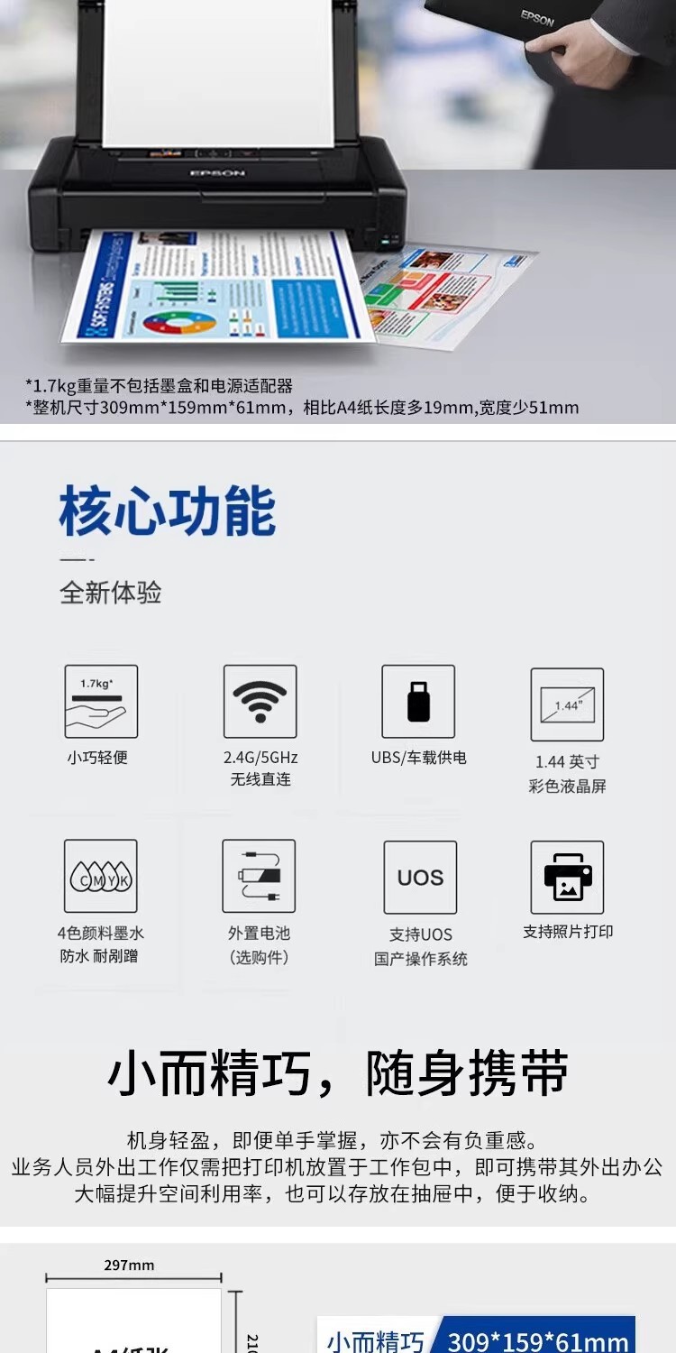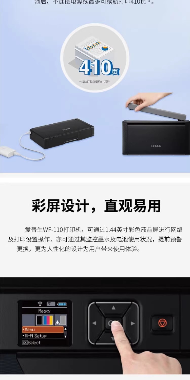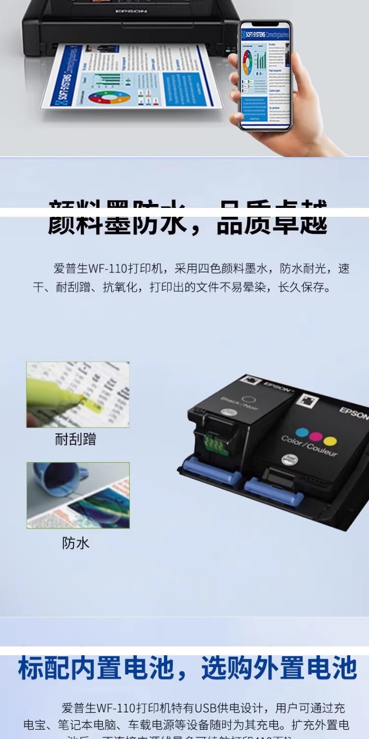 EPSON WF - 110 impresora de inyección de tinta a color A4 recargable mini portátil