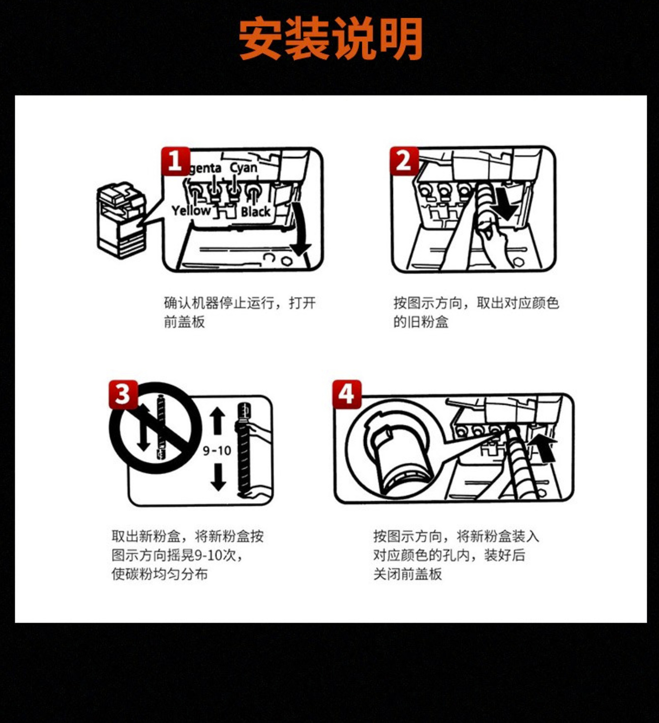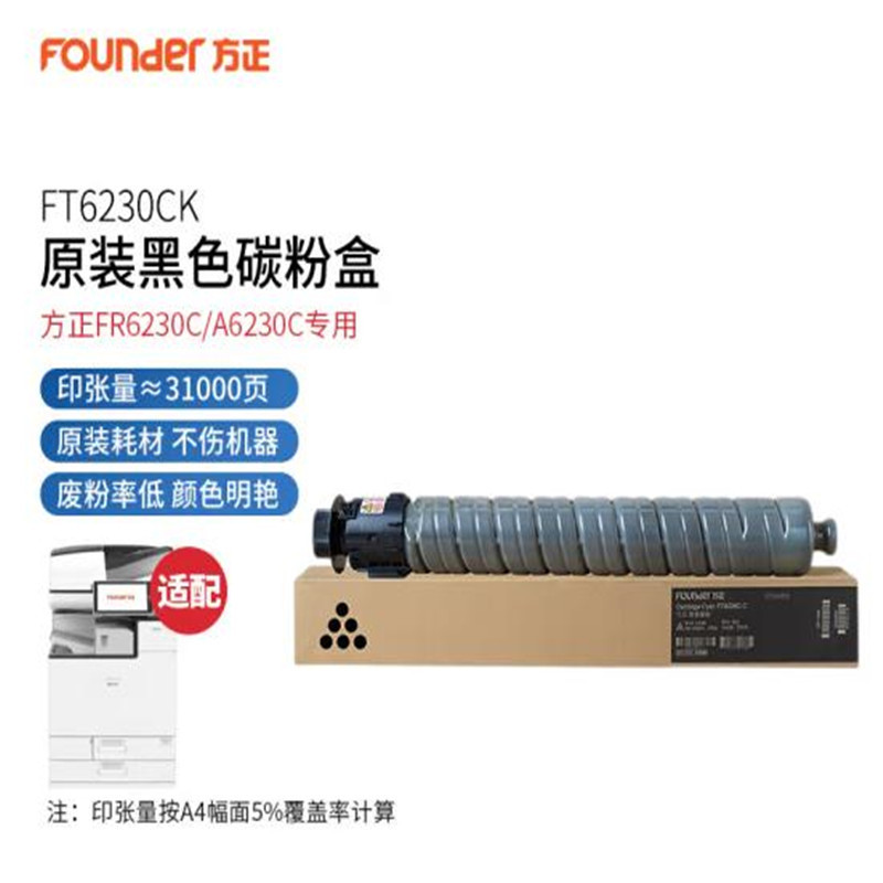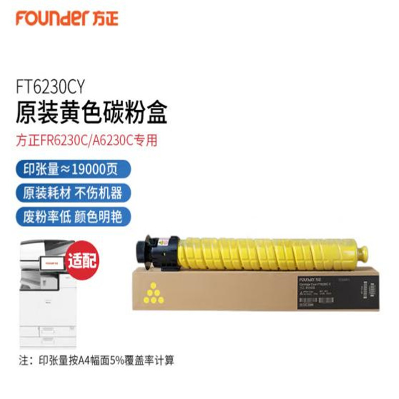 | Colores | Founder FR6230 Polvo negro alrededor de 31000 páginas,FT6230CC caja de polvo azul alrededor de 19000 páginas,FT6230CY caja de polvo amarillo alrededor de 19000 páginas,FT6230CM caja de polvo rojo alrededor de 19000 páginas,Un conjunto de cuatro colores |