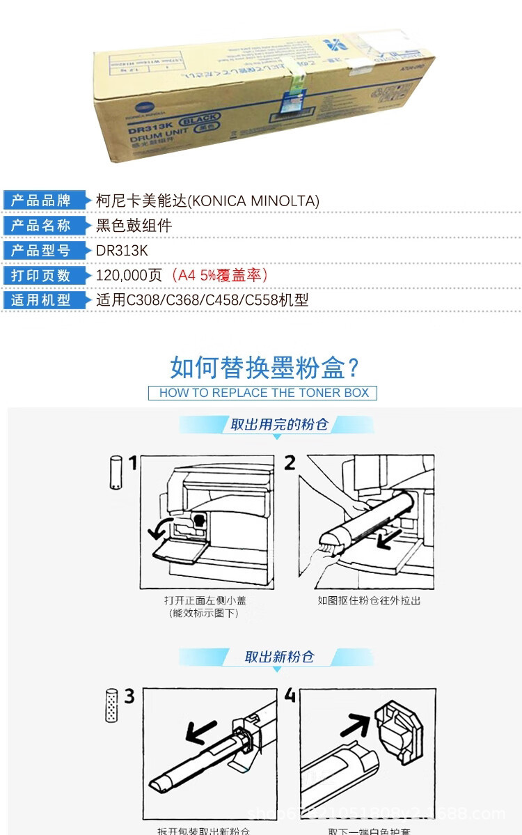 | Color | Cartucho de tinta de copia original Komei DR313K negro, cartucho de tinta de copia original Komei DR313CMY color, compatible con cartucho de tinta de copia DR313K negro, compatible con cartucho de tinta de copia DR313CMY color |