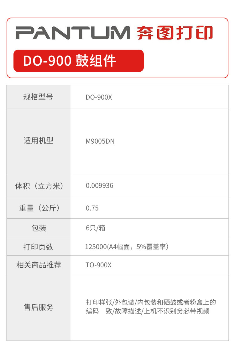 Unidad de tambor (DO-900) para cartuchos de tóner Pantum (TO-900X) compatible con impresoras P9502DN M9006DN