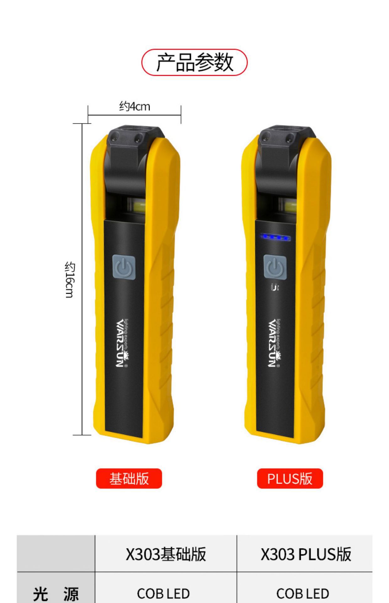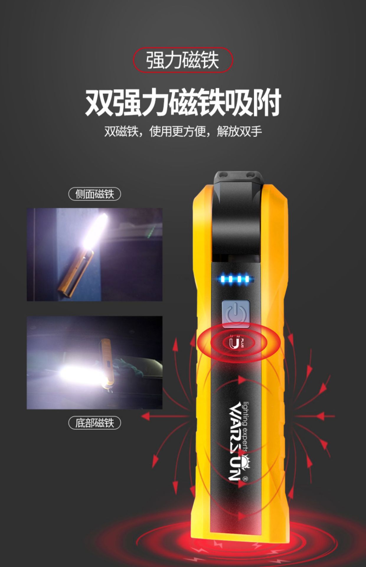 Wolson X303 lámpara de trabajo con imán LED superbrillante lámpara de servicio de adsorción magnética fuerte gancho giratorio pantalla de cantidad de energía