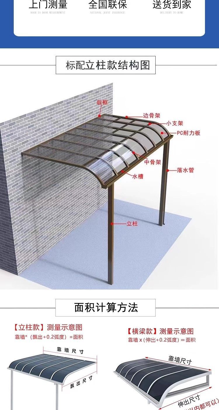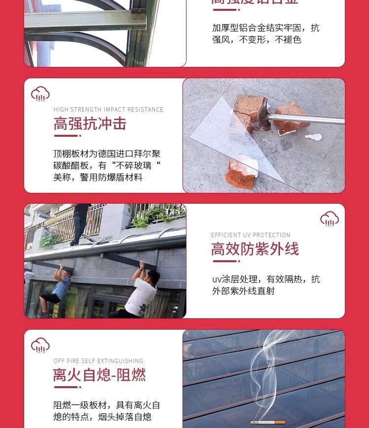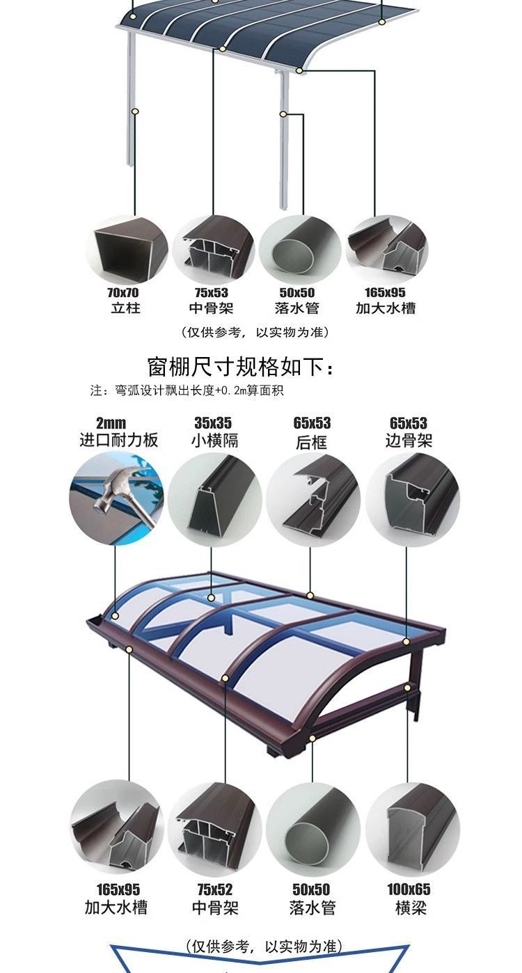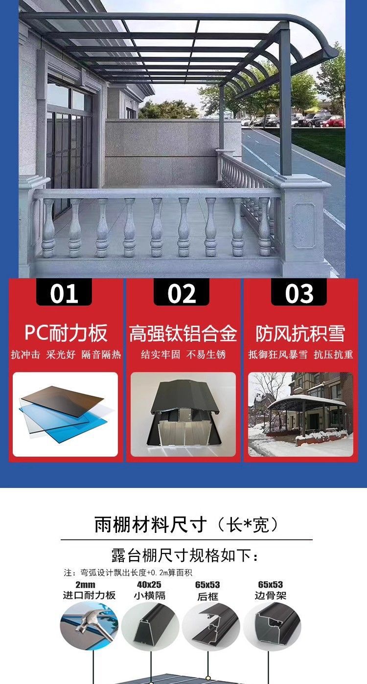 Tapa de lluvia de aleación de aluminio, ventana de villa a prueba de lluvia al aire libre, cubierta de sol, tablero de resistencia, toldo de patio, alero, puerta, lluvia