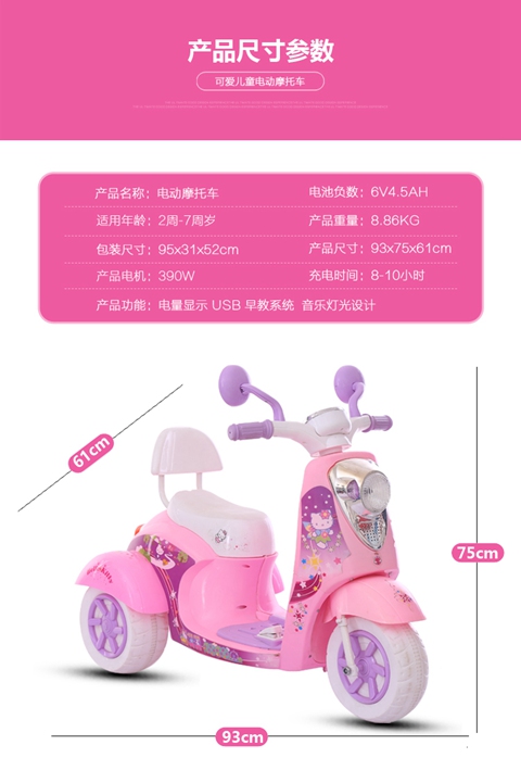 Motocicleta eléctrica para niños Aisha, niños y niñas pueden sentarse en un coche de juguete recargable para bebés de 2 - 5 años de edad, tres ruedas de batería