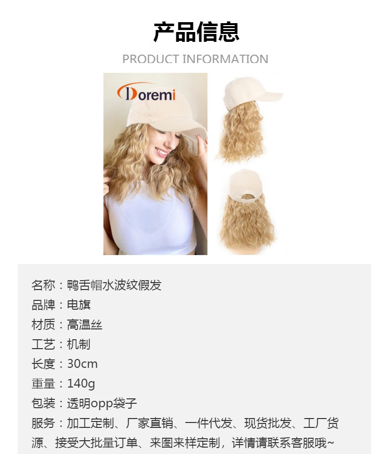 Transfronterizo sombrero de boca de pato peluca de agua ondulada fibra sintética rizada corta sombrero peluca 30cm190g