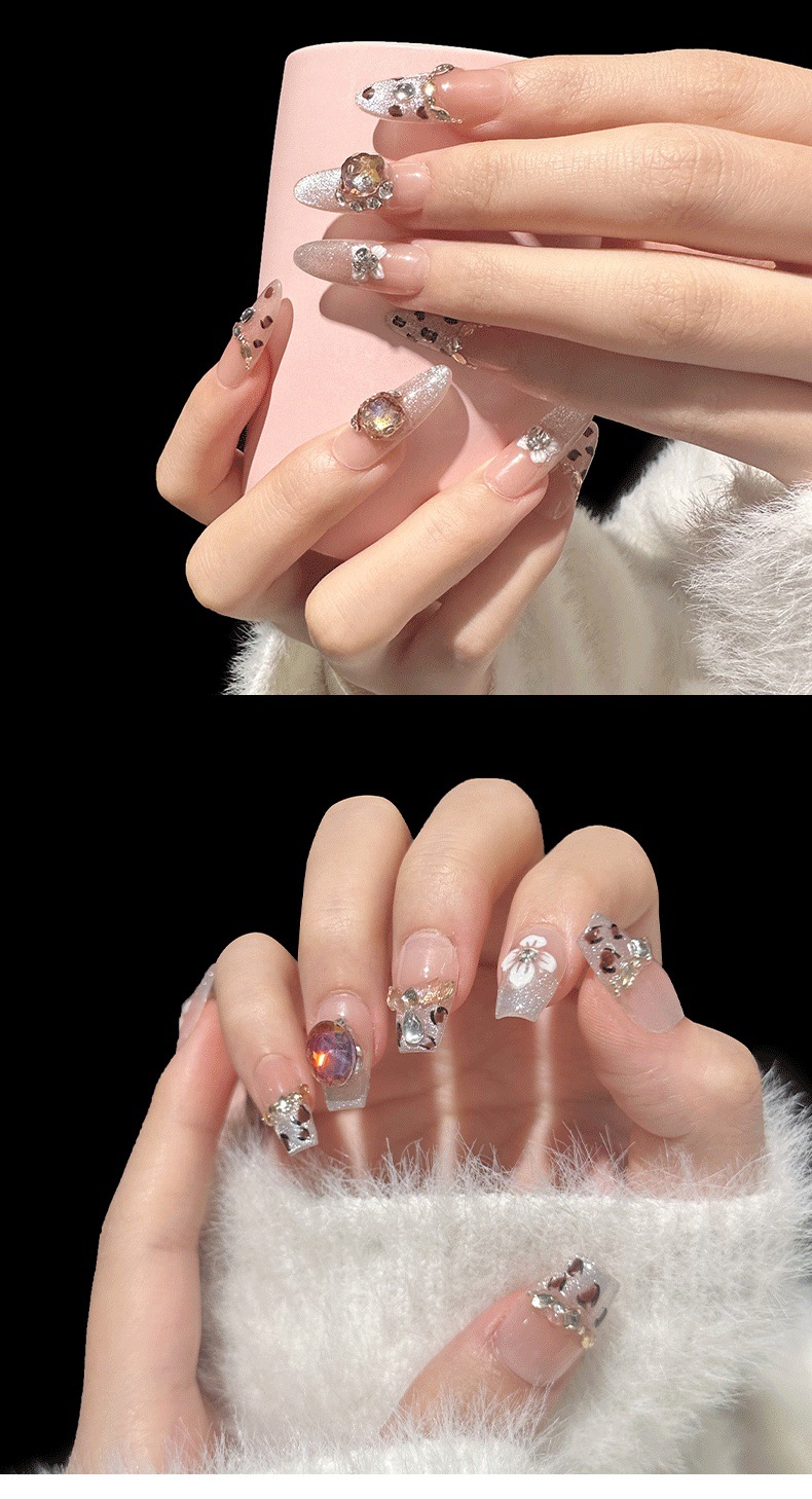Amor negro rubí con diamantes hechos a mano puro otoño y invierno vestir con estampado de leopardo, ojo de gato, manicure de lujo ligero
