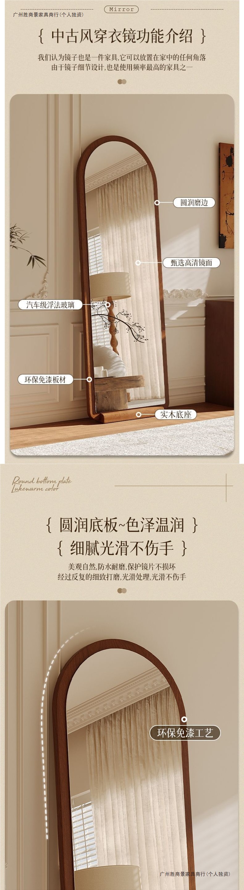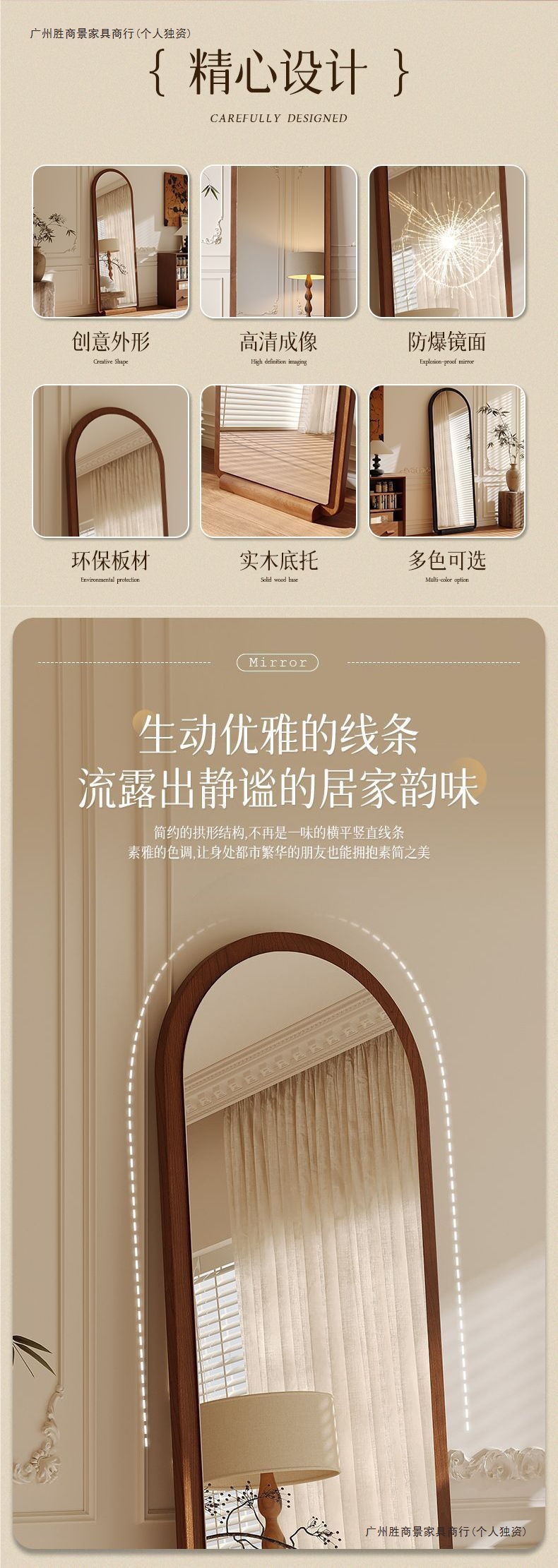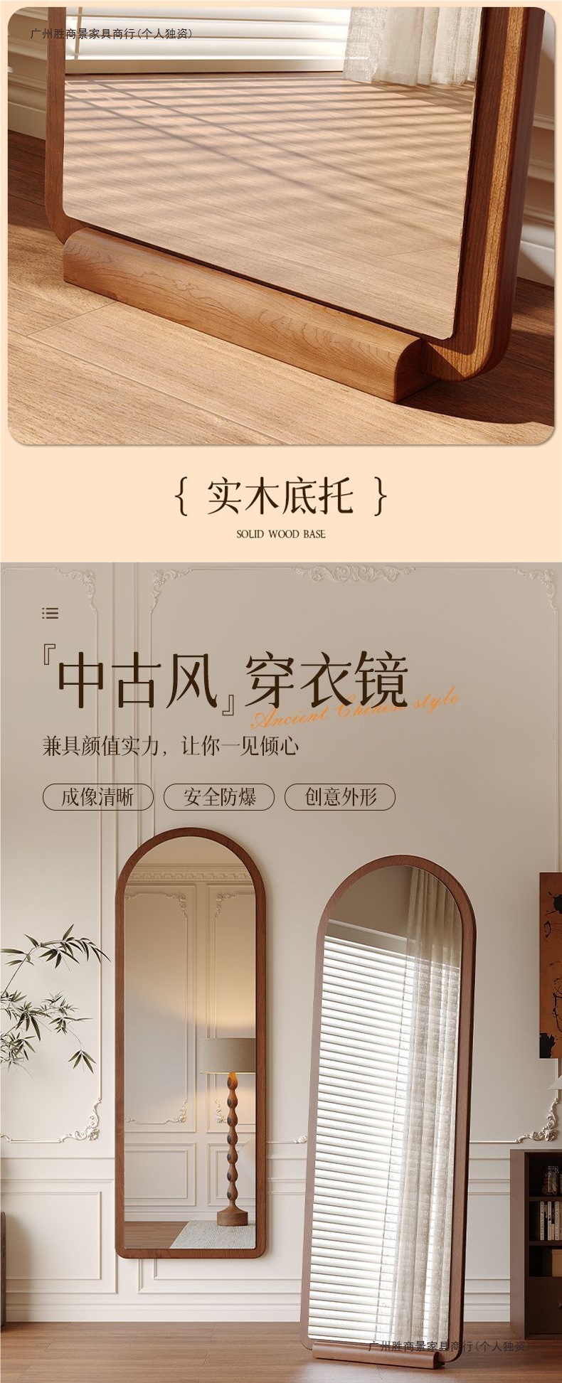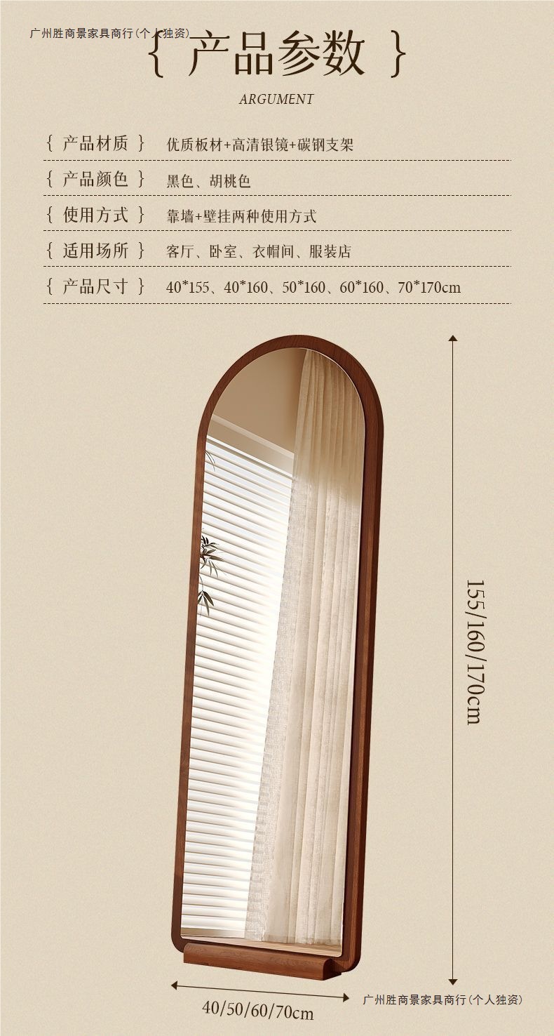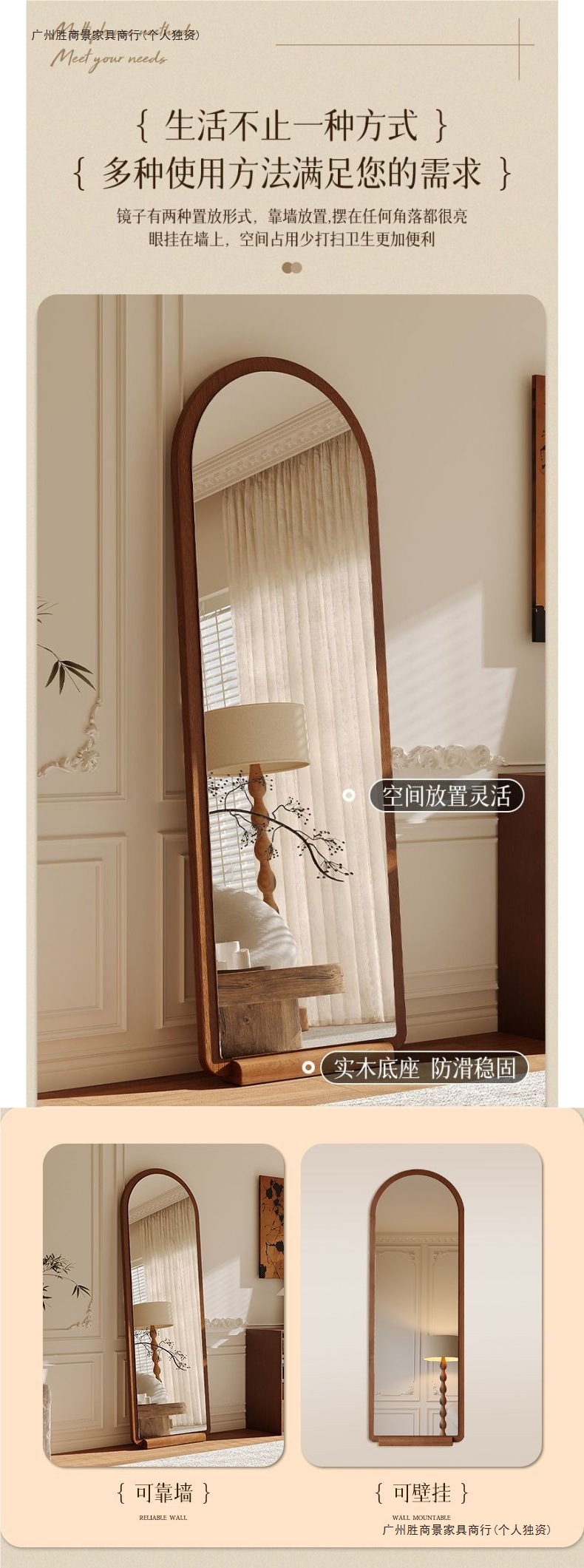Espejo de madera sólida, espejo de cuerpo entero, espejo de piso, espejo de vestimenta, espejo de vestimenta, espejo de pared, espejo grande