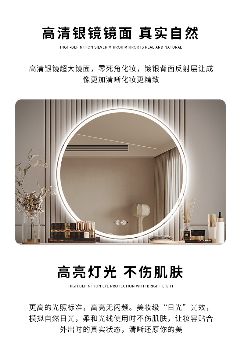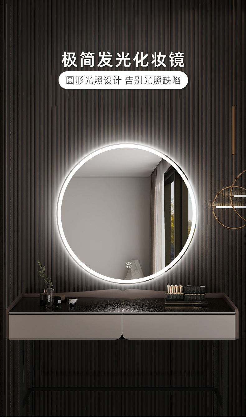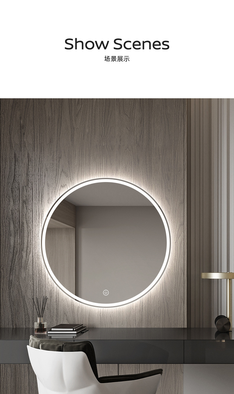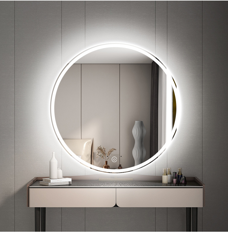 Espejo redondo colgado en la pared desinebriado lavabo inteligente espejo de lavado lámpara de baño espejo colgado en la pared con lámpara de baño espejo nicho