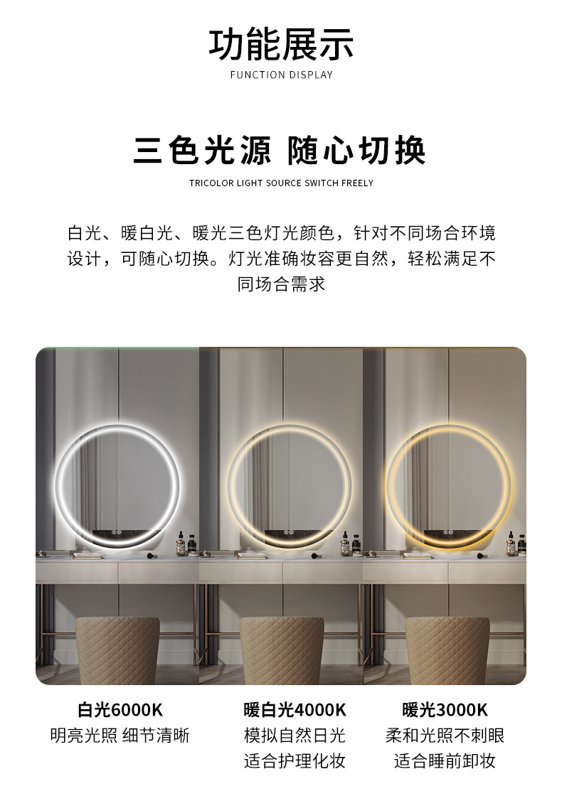 | Color | Ingeniería del hotel, tamaño personalizado, función personalizada [Contacto al servicio al cliente], un solo toque [luz blanca], un solo toque [luz cálida], un solo toque [luz tricolor], doble toque = desinebriado + interruptor táctil [luz blanca], doble toque = desinebriado + interruptor táctil [luz cálida], doble toque = desinebriado + interruptor táctil [luz tricolor], función de desinebriado + pantalla de temperatura de tiempo [luz blanca], función de desinebriado + pantalla de temperatura de tiempo [luz cálida], función de desinebriado + pantalla de temperatura de tiempo [luz de tres colores], Temporario y temperatura + eliminación de niebla + inducción del cuerpo humano [luz tricolor], inducción de barrido manual + luz tricolor |