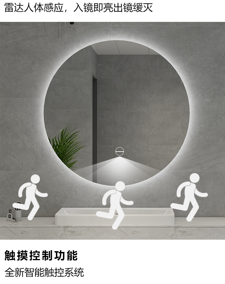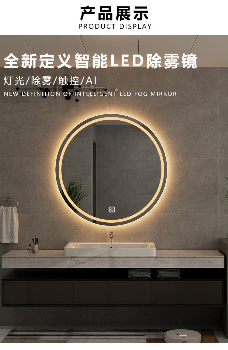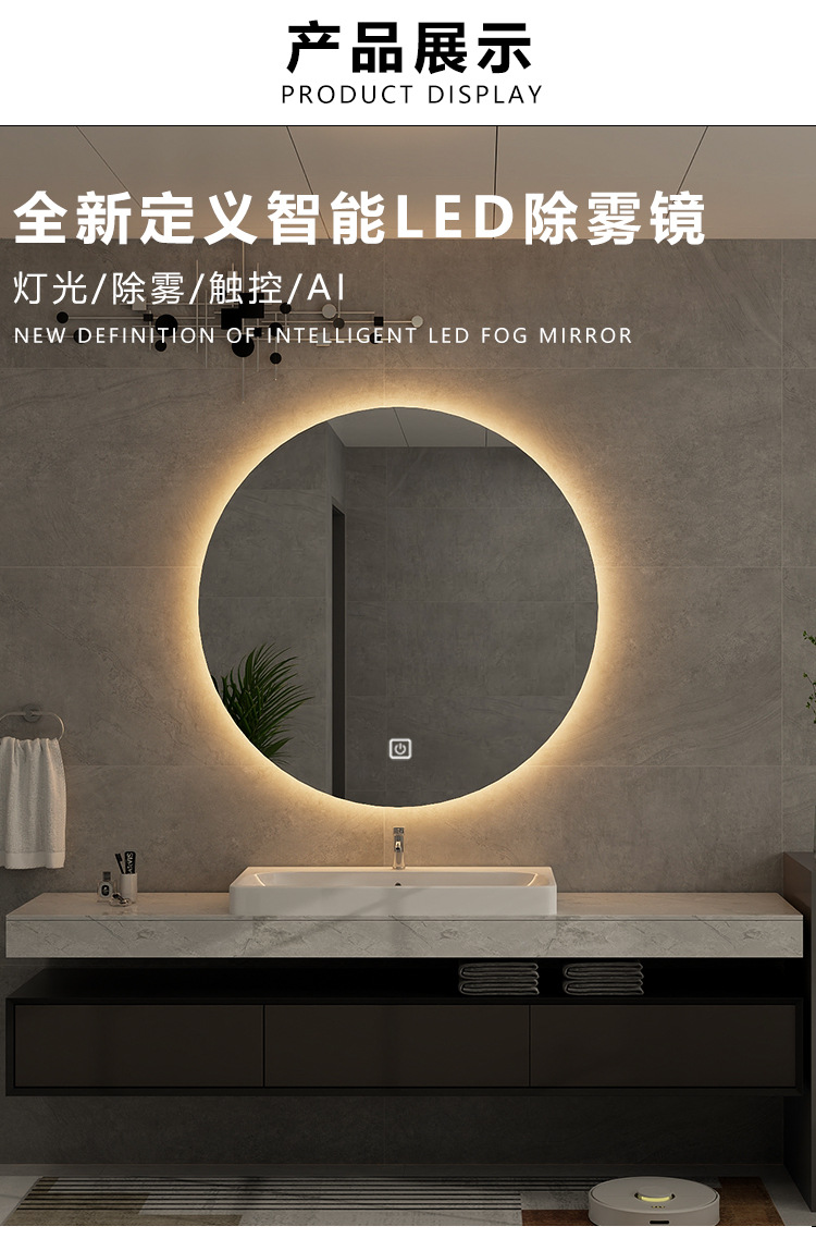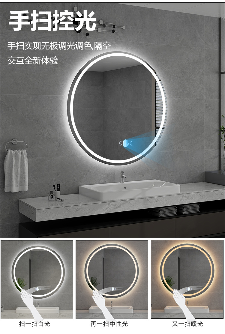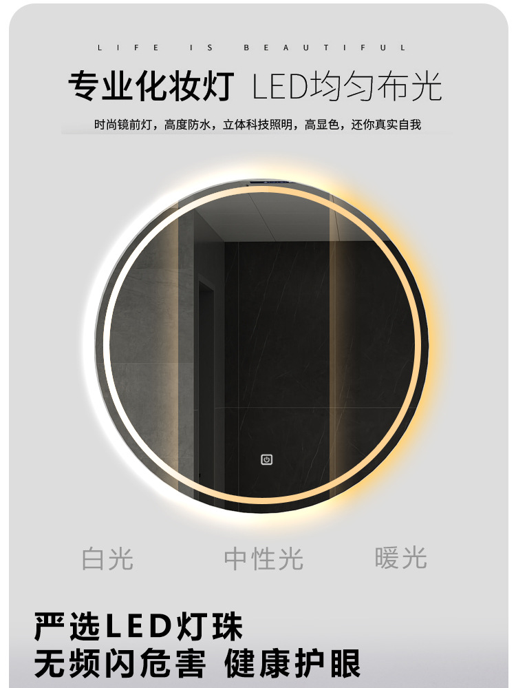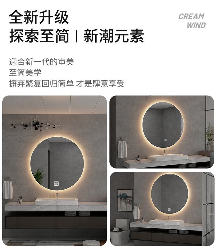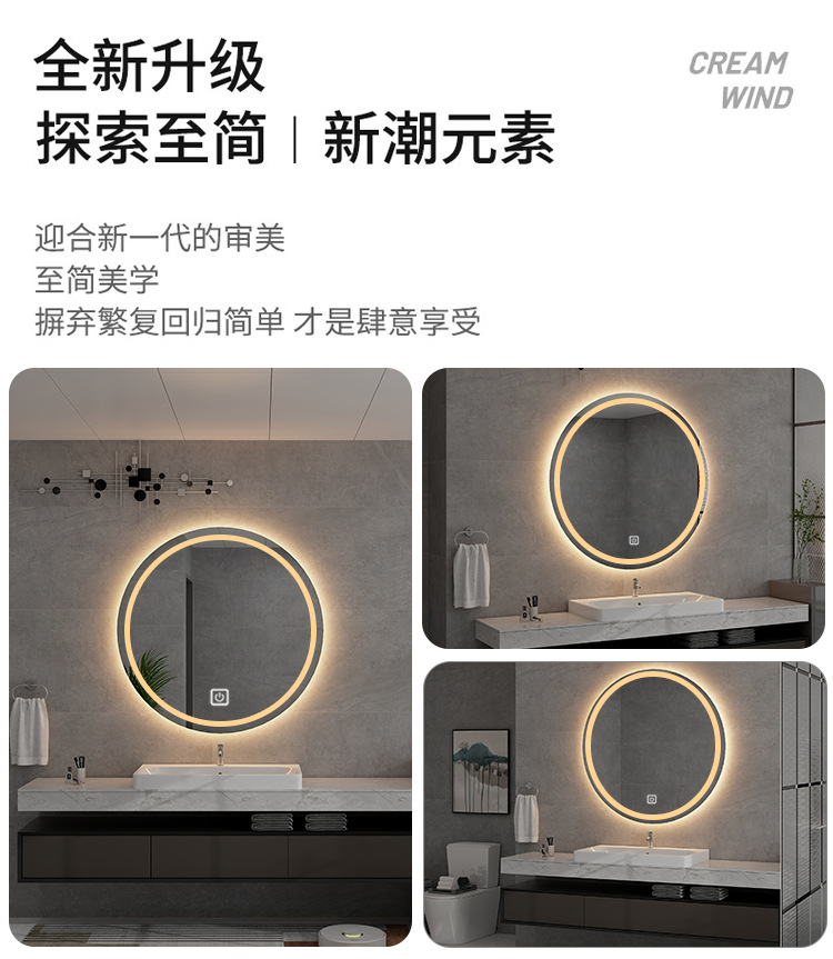 Espejo de baño de inducción redondo nórdico de niebla, espejo de baño LED, pantalla táctil luminosa, espejo inteligente, espejo maquillaje