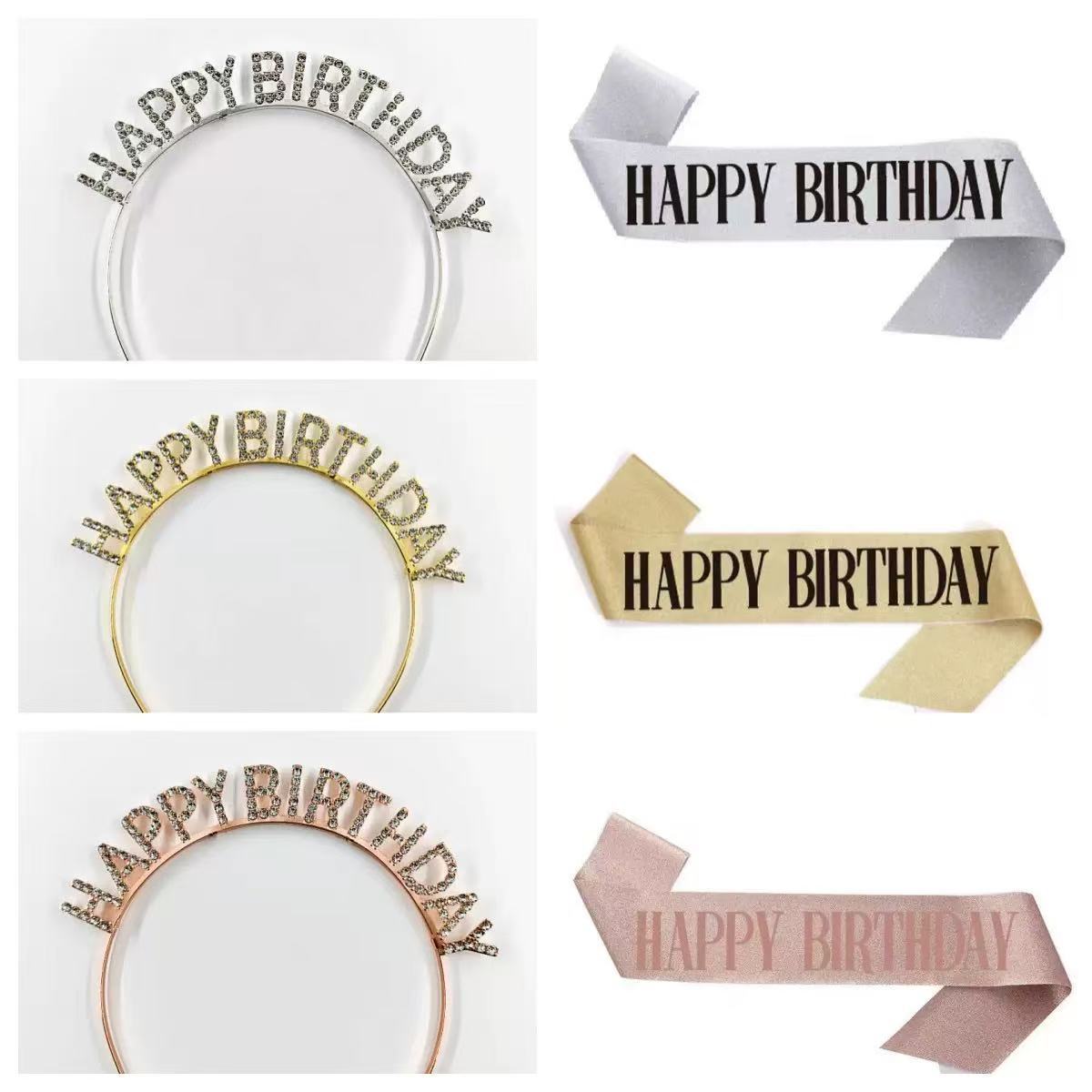 Cinta brillante para fiesta de cumpleaños, banda de cumpleaños, cinta de etiqueta, letras doradas, decoración de fiesta, diadema al por mayor