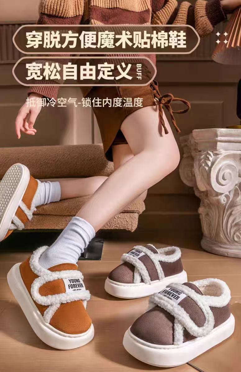 Sin impuestos) invierno 2025 nuevo estilo interior zapatillas de algodón lindas para mujeres con suela gruesa antideslizante de moda para estudiantes calientes