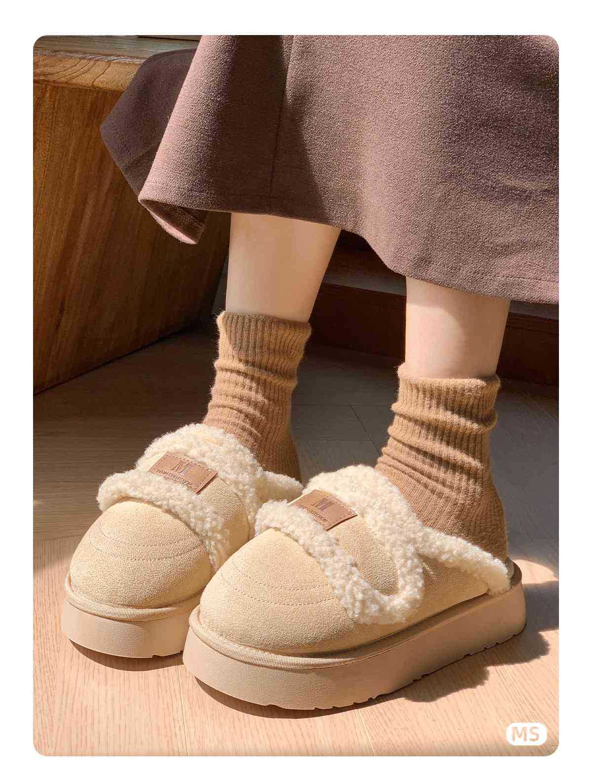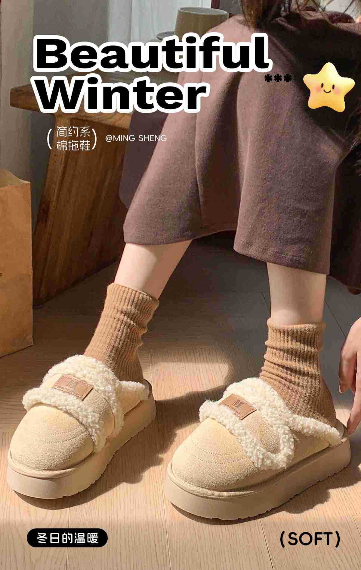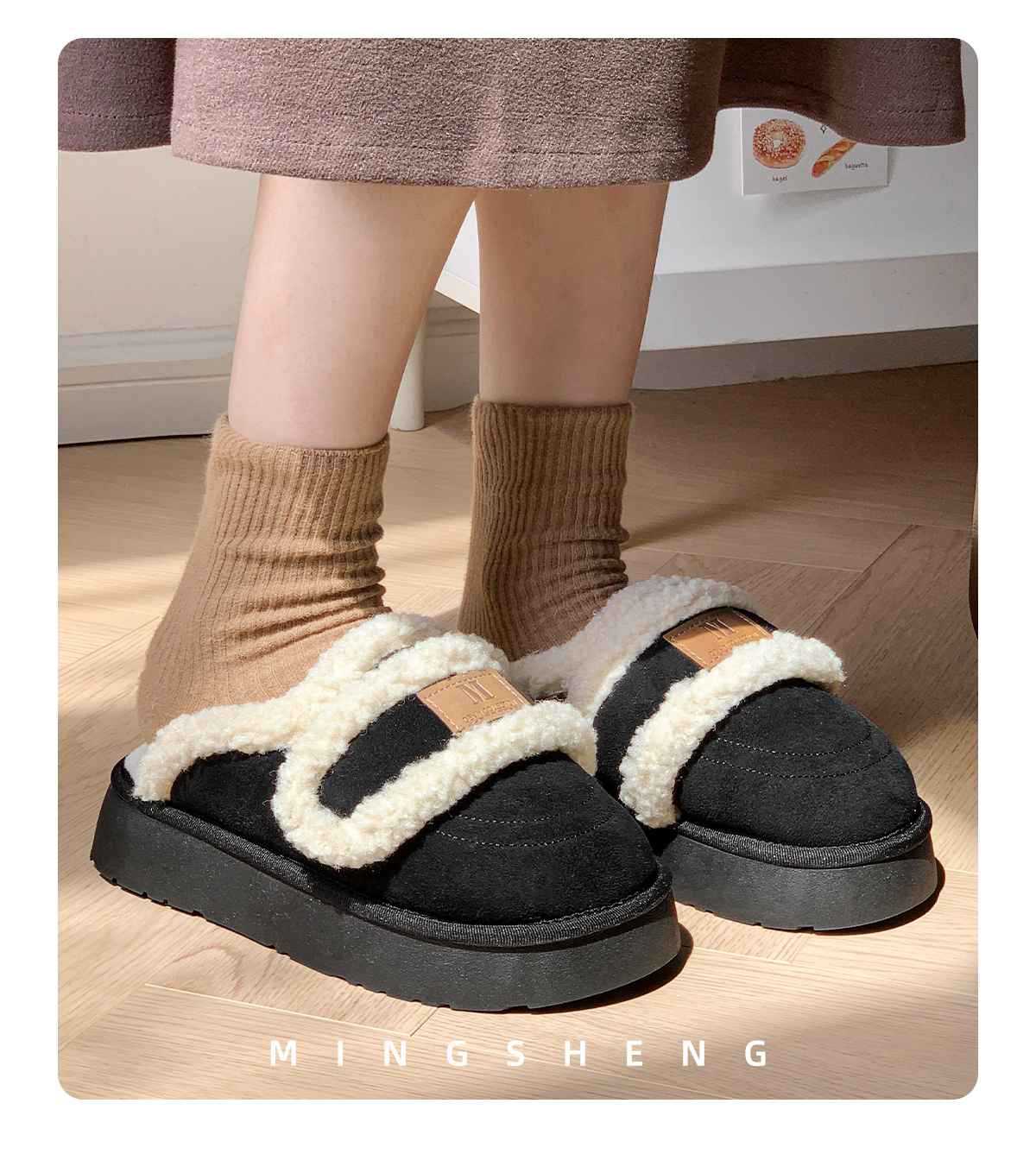 Zapatillas de algodón velcro para mujeres invierno 2025 nuevo estilo de hogar interior antideslizante fondo grueso calentamiento de peluche para mujeres invierno