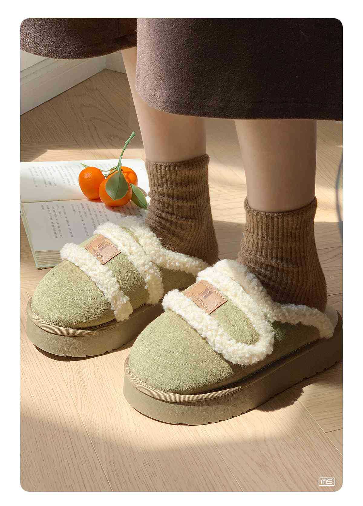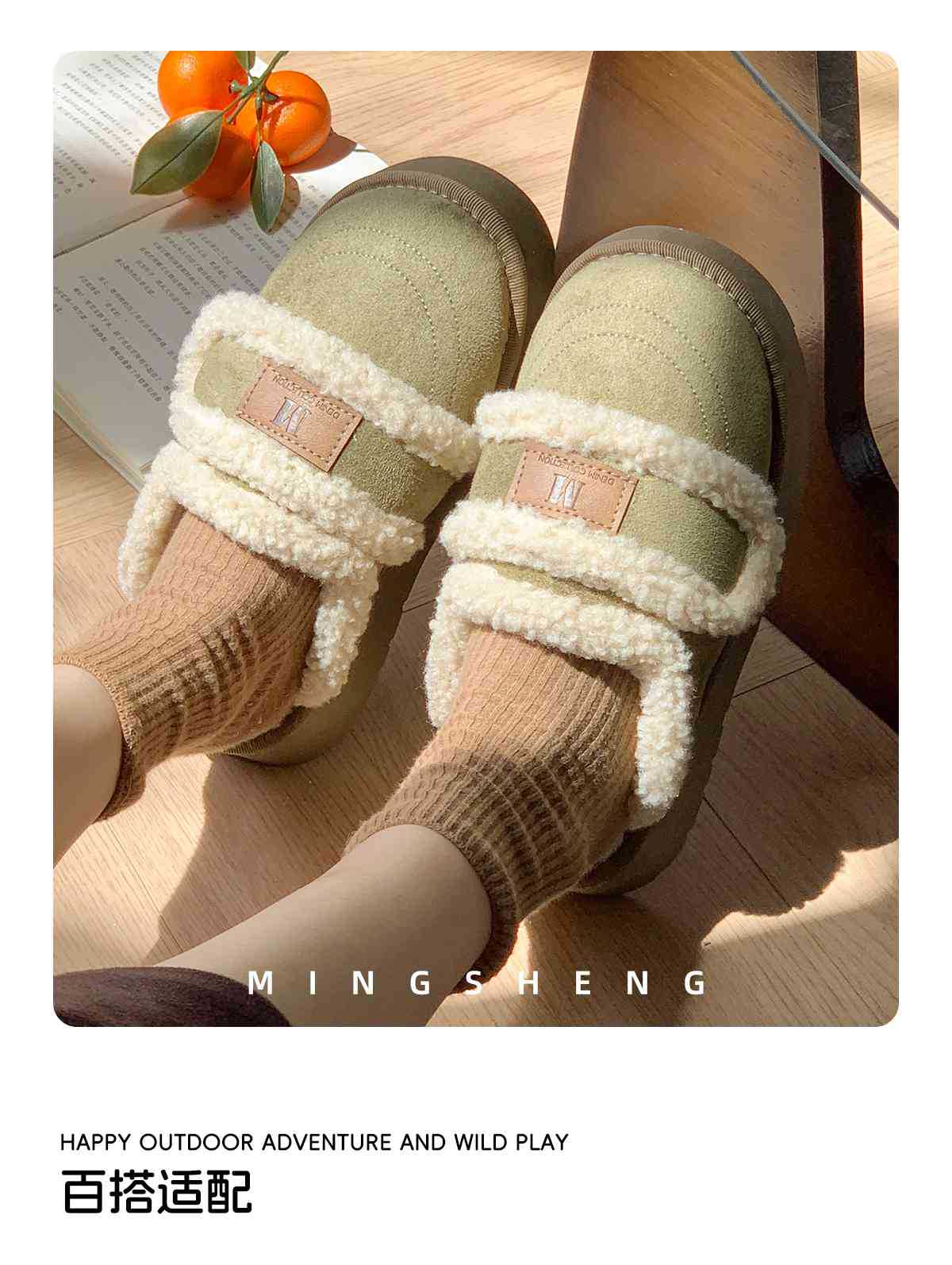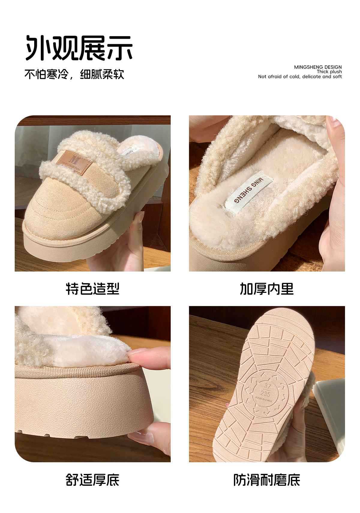 Zapatillas de algodón velcro para mujeres invierno 2025 nuevo estilo de hogar interior antideslizante fondo grueso calentamiento de peluche para mujeres invierno