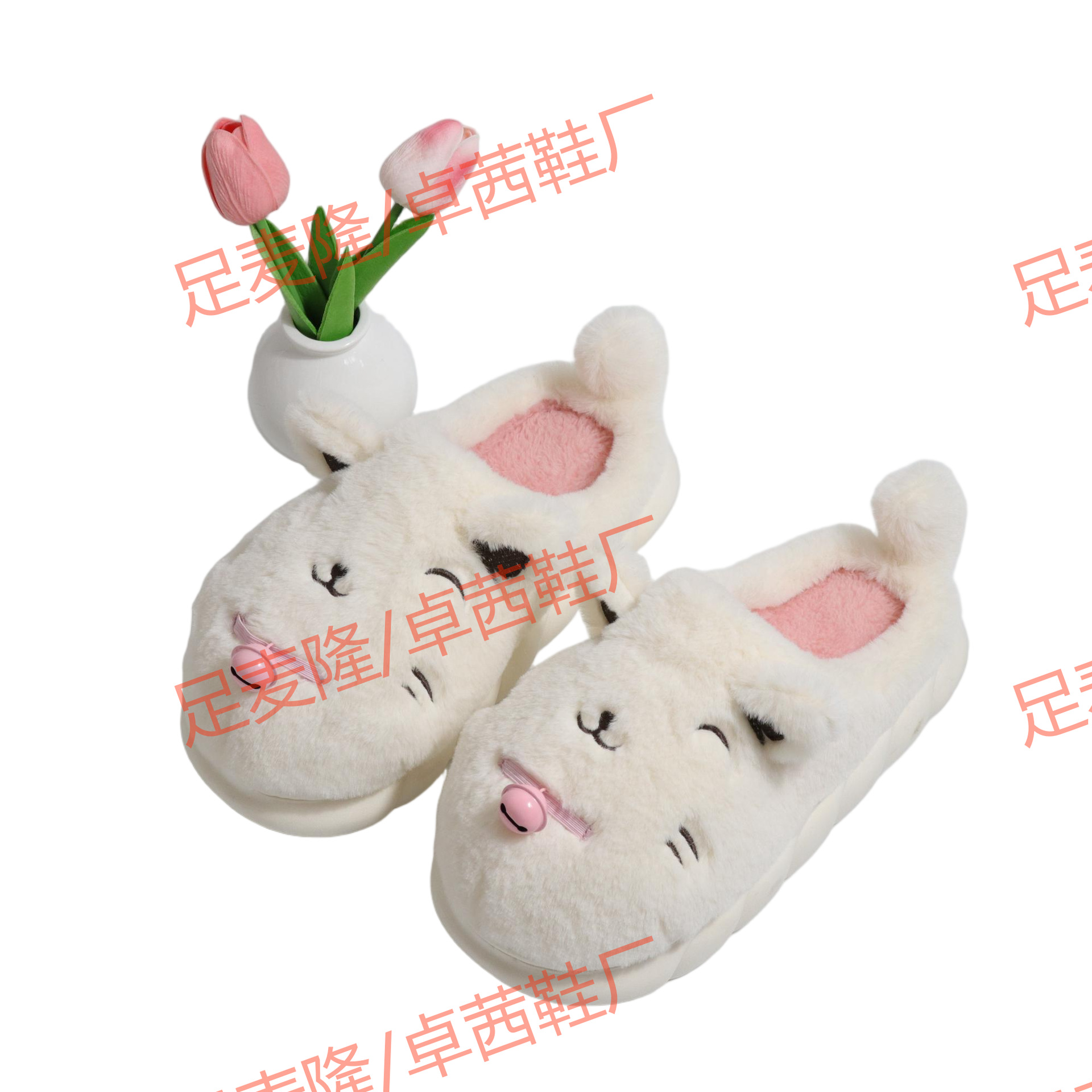 Campana blanca personalizada de comercio exterior, gato, mujer, otoño e invierno, zapatillas de algodón cálidas para el hogar