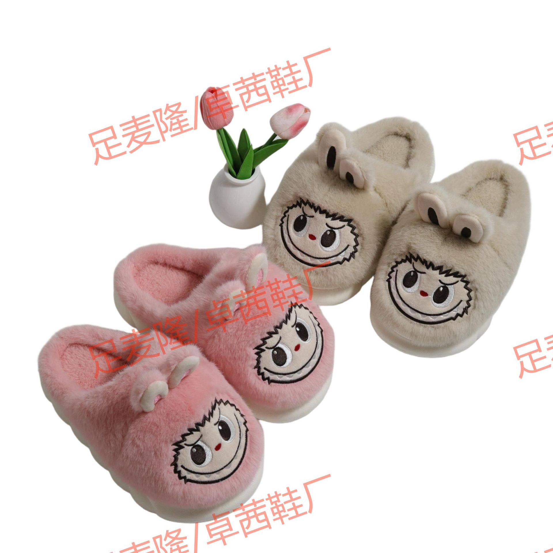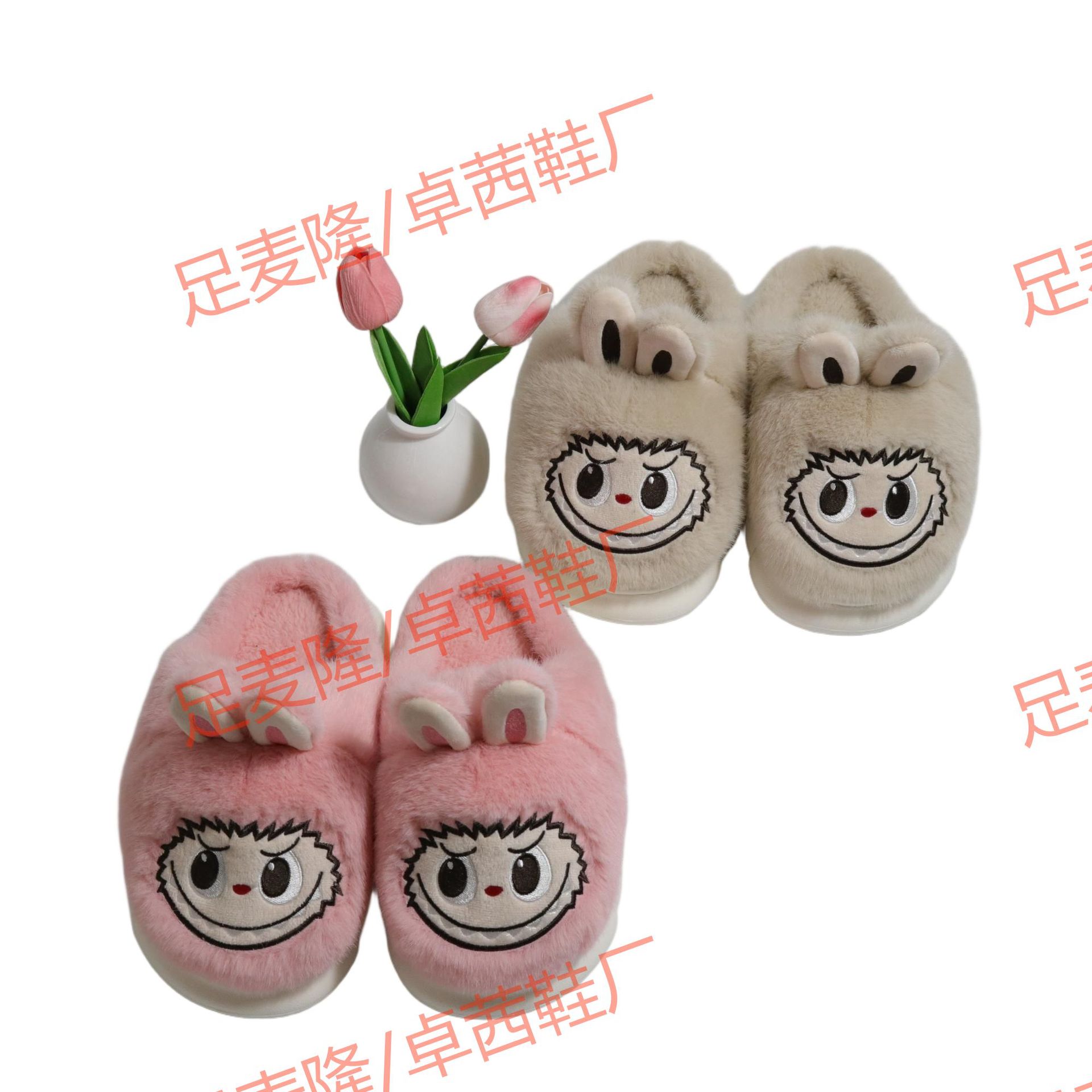 Labubu rabu zapatillas de algodón de tela personalizada comercio exterior nuevo estilo linda mujer otoño e invierno calidez del hogar zapatillas personalizadas