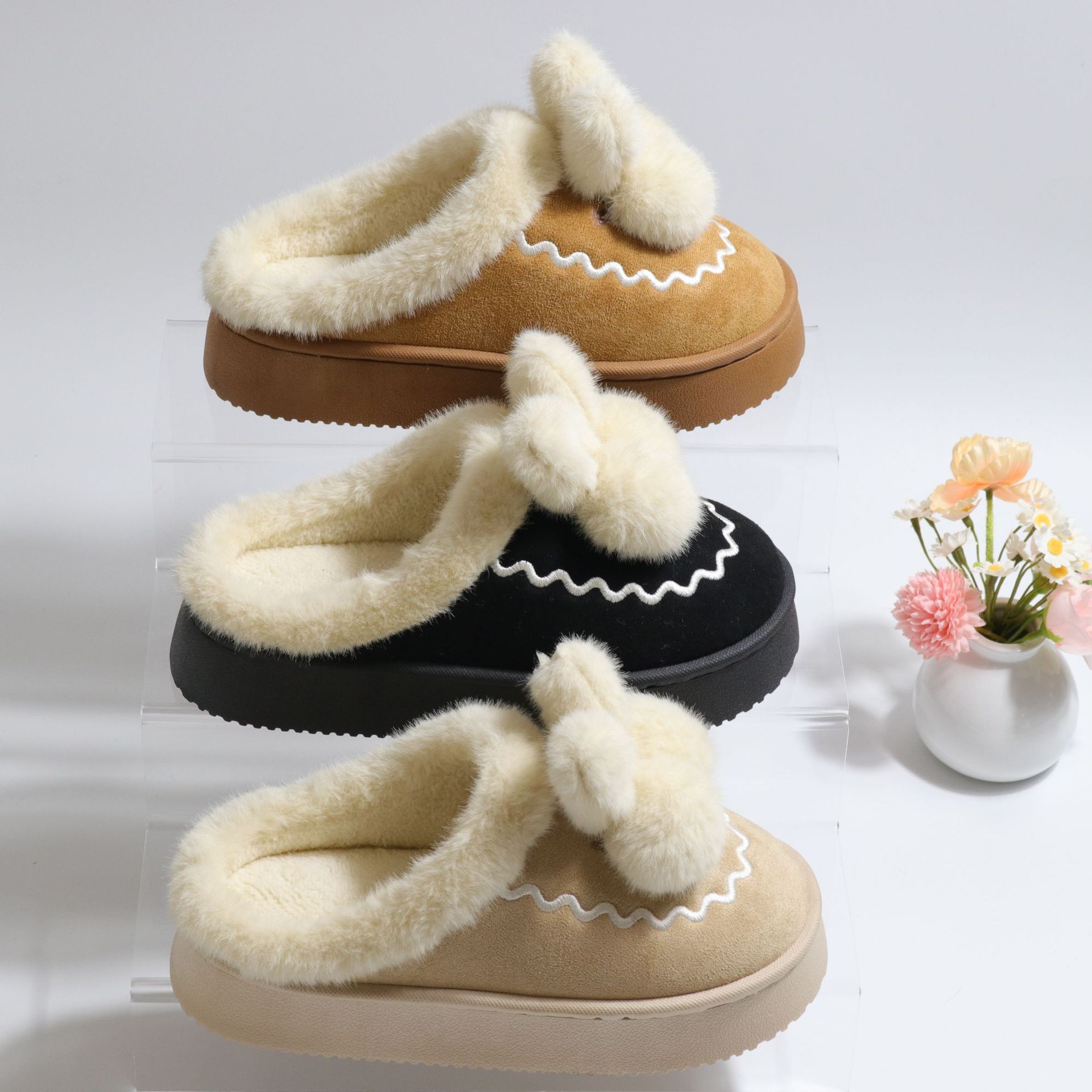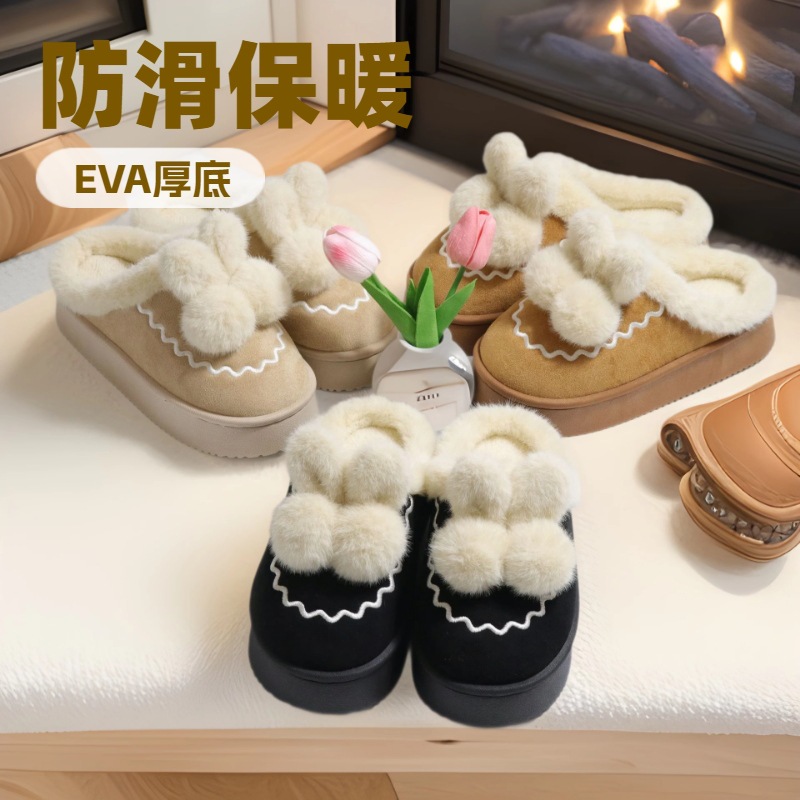 Zapatillas de algodón de felpa gruesa para mujer, personalización de comercio exterior de otoño e invierno, más nuevas zapatillas de algodón cálido para el hogar de terciopelo