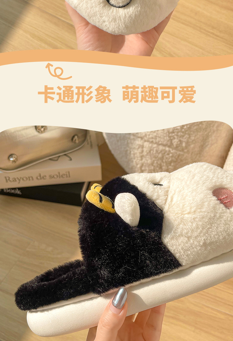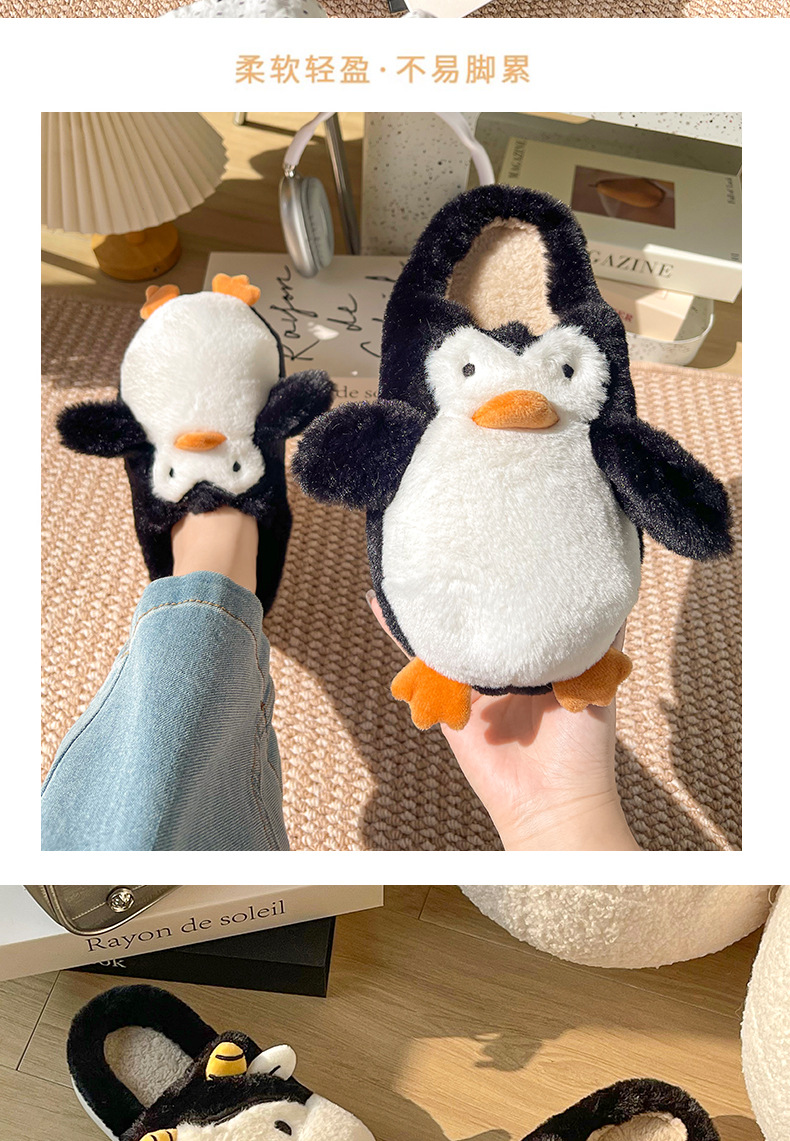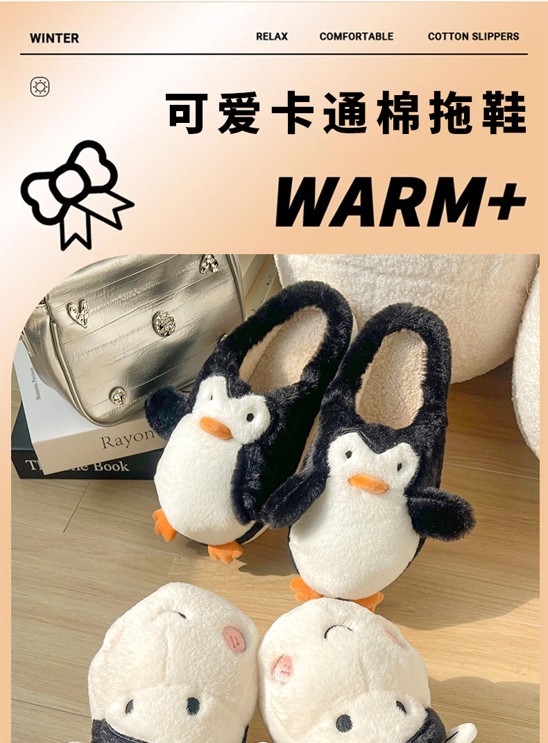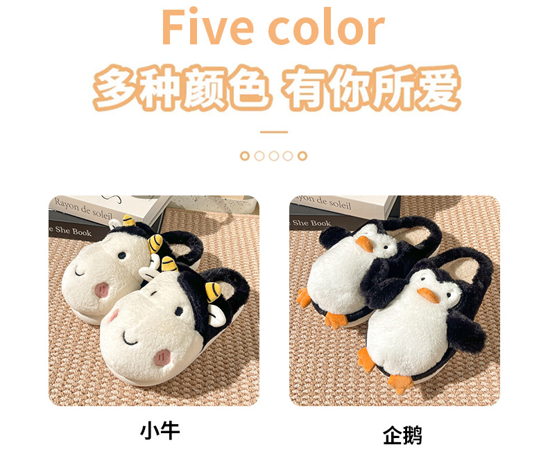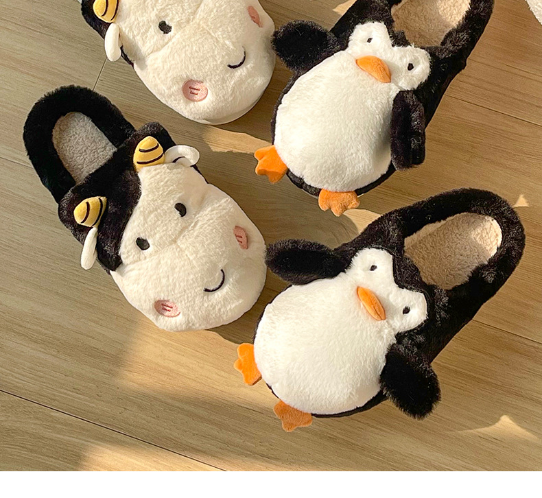 Pingüino Vaca Dibujos animados Zapatillas de algodón Hombres y mujeres Calidez antideslizante Baotou Zapatillas de algodón de felpa al por mayor