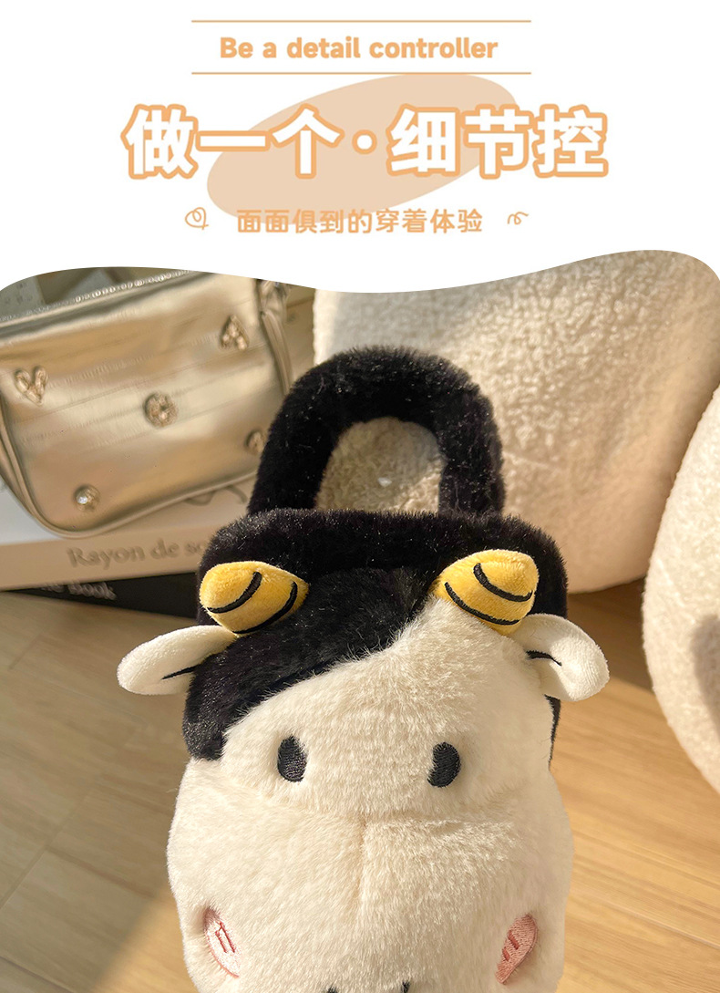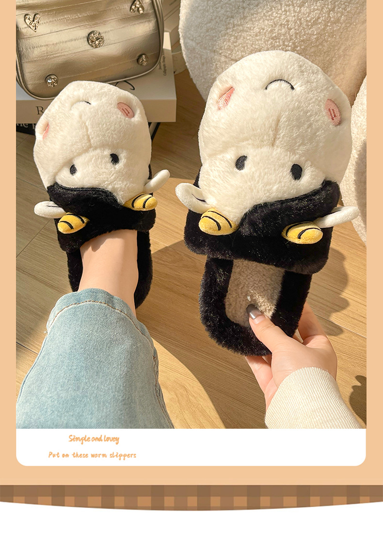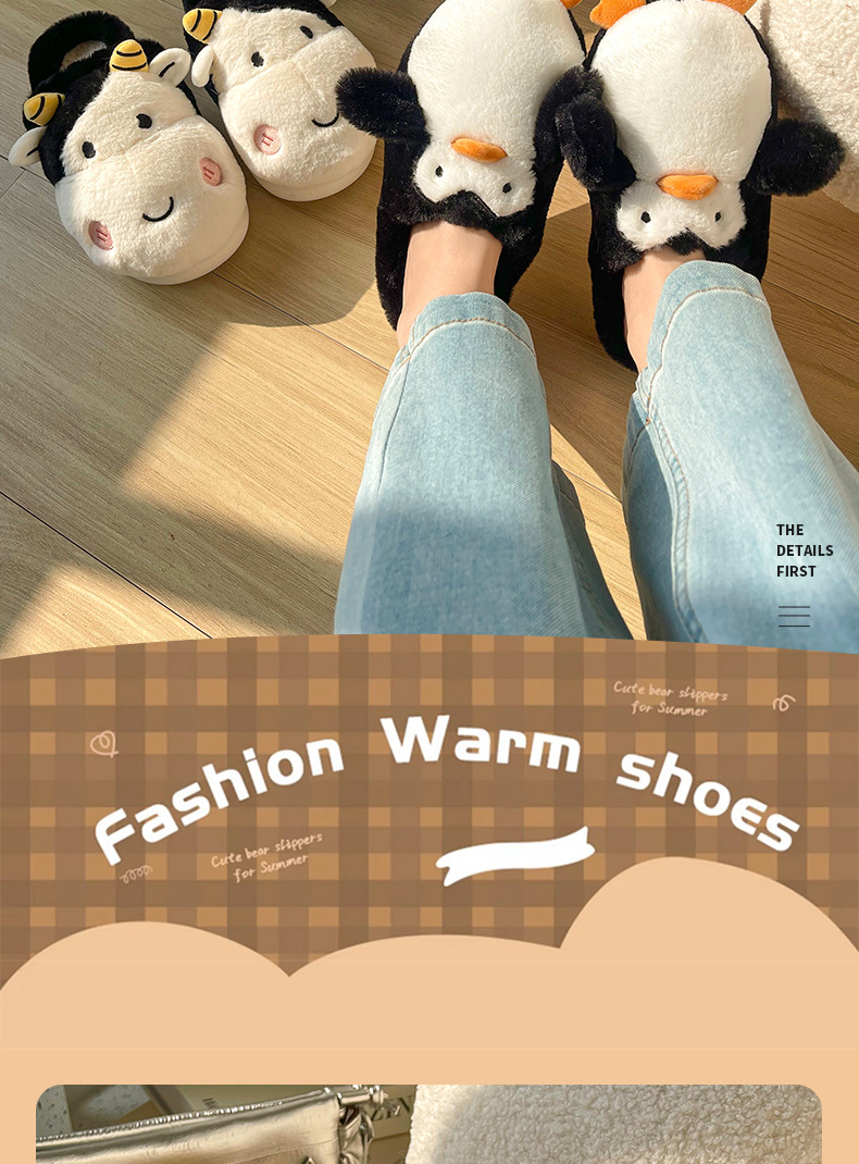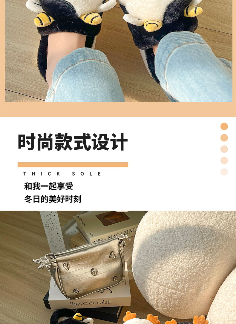 Pingüino Vaca Dibujos animados Zapatillas de algodón Hombres y mujeres Calidez antideslizante Baotou Zapatillas de algodón de felpa al por mayor