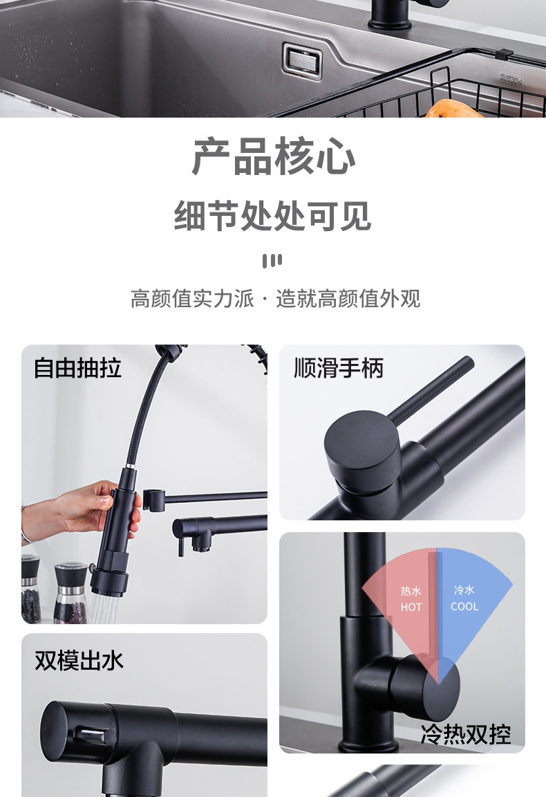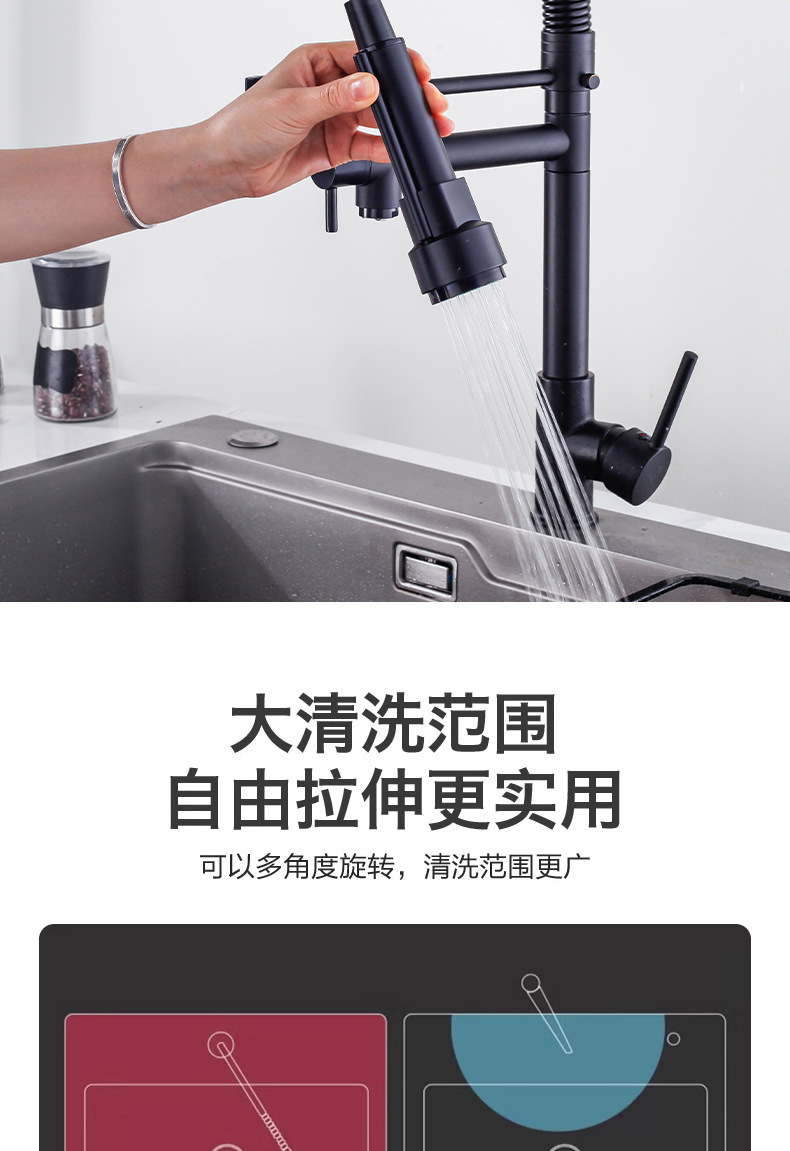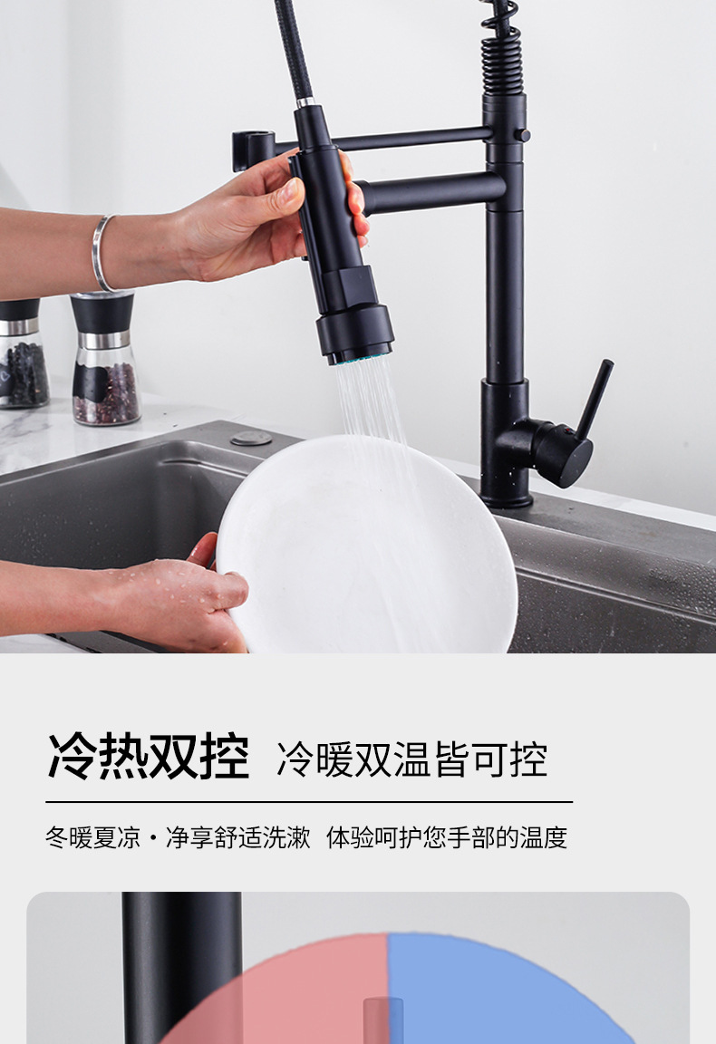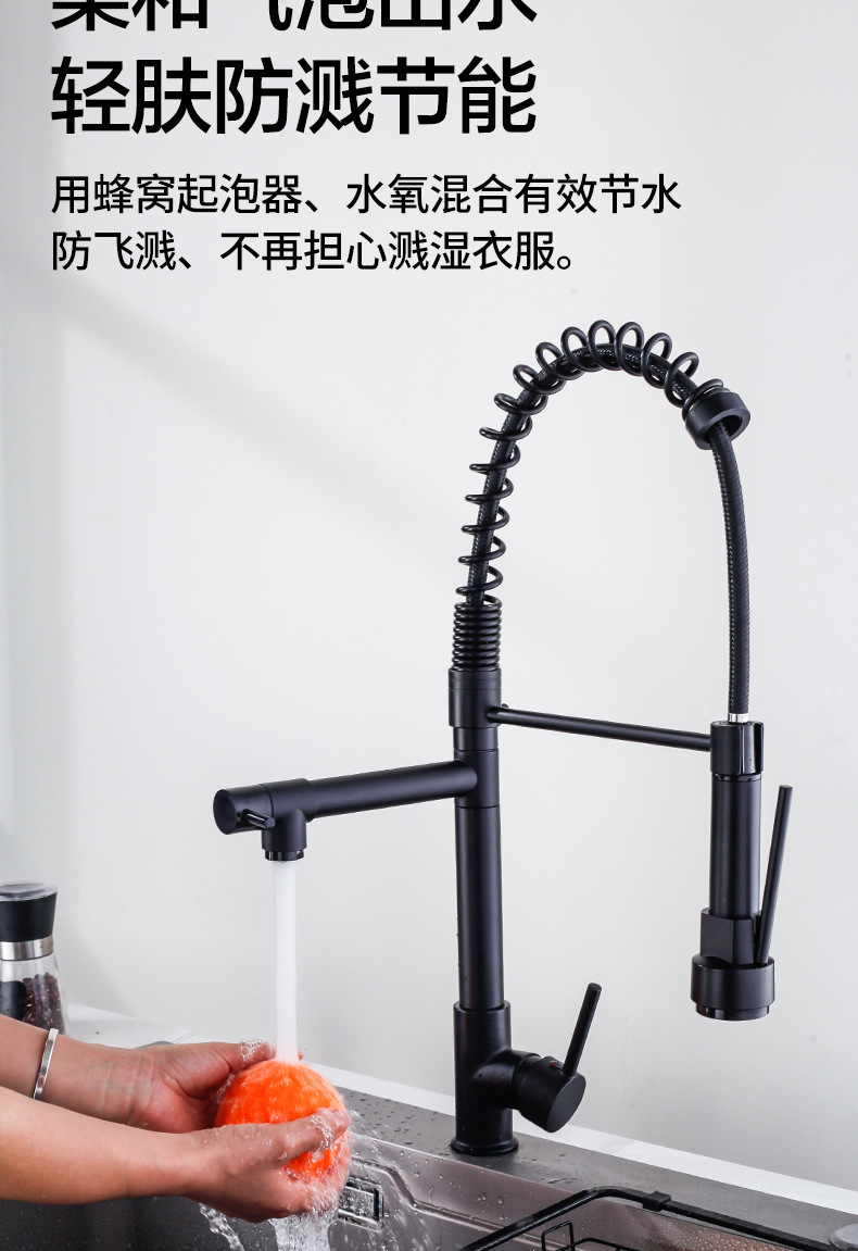 Grifos de primavera transfronterizos de cocina fregadero frío y caliente lavavajillas lavavajillas giratorias de doble salida de agua grifos universales a prueba de salpicaduras
