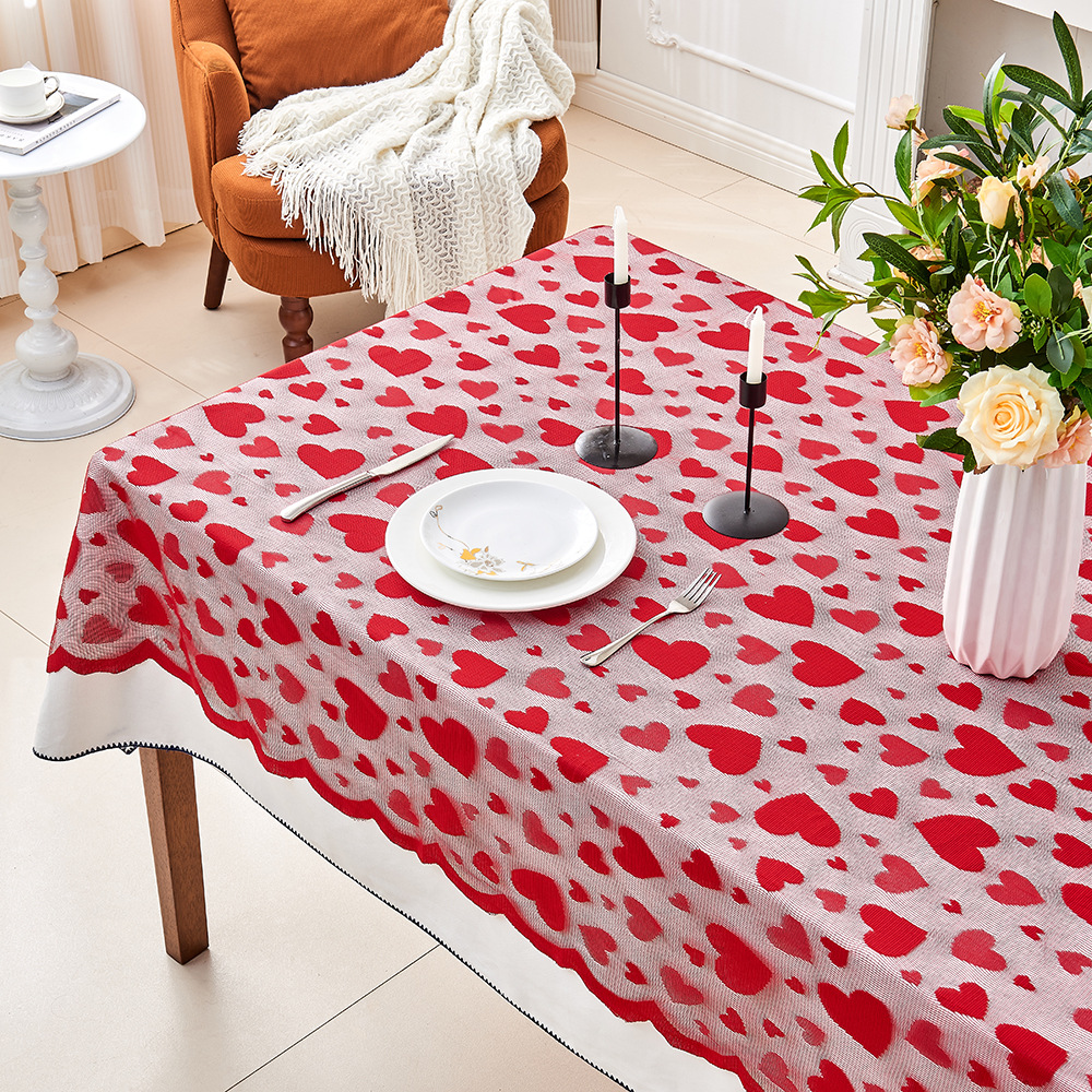 Nuevo amor Día de San Valentín tela de mesa rectangular table bandera de encaje conjunto de almohadillas rojo estilo europeo y americano decoración de la fiesta