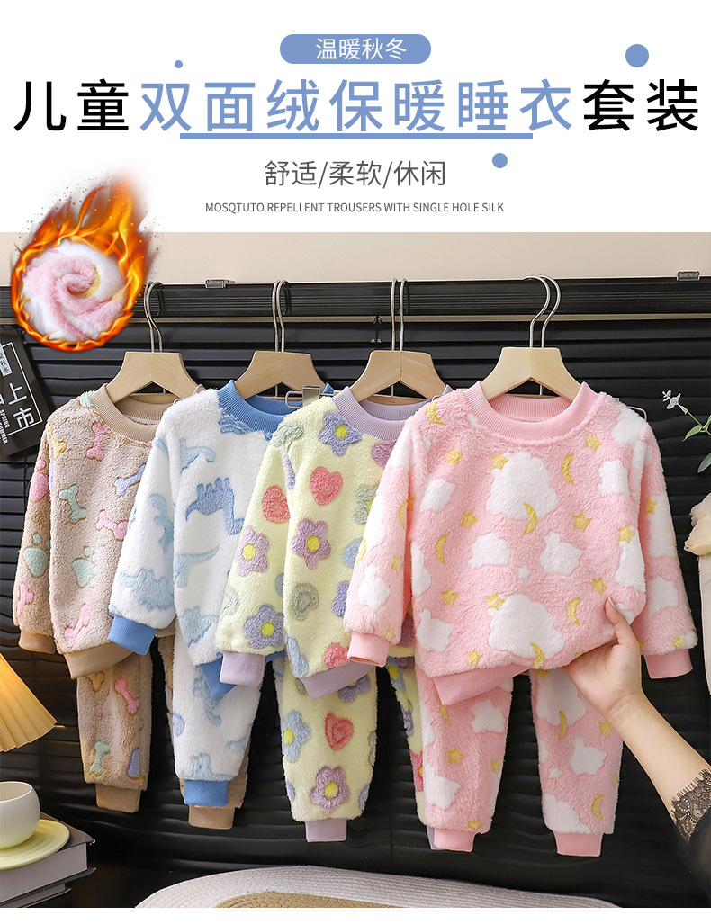 Pajamas infantiles de invierno nuevo niño con fibrillas gruesas niñas calentamiento ropa de bebé ropa de hogar ropa infantil
