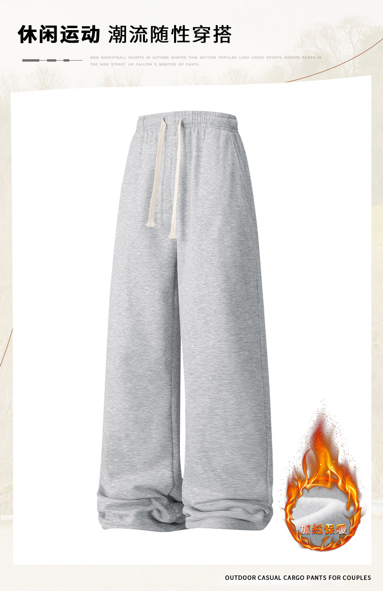 Camisas de ropa de barril recto y pantalones de terciopelo para hombres coreanos gris graso grueso calentamiento pantalones deportivos ociosos