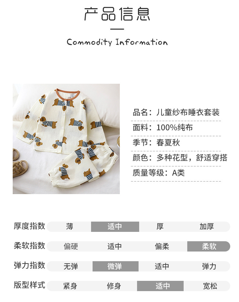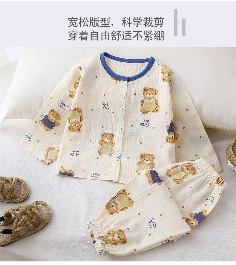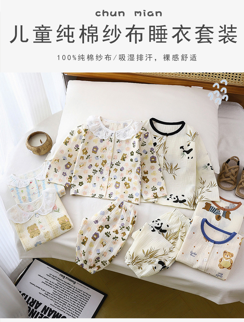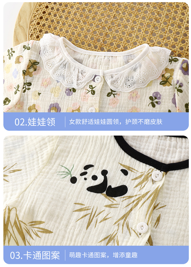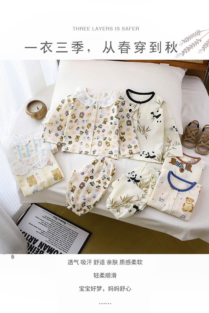 Traje de servicio a domicilio para niños verano nuevo estilo niño hilo de algodón de doble capa pijamas para niñas bebé encaje de algodón ropa para niños