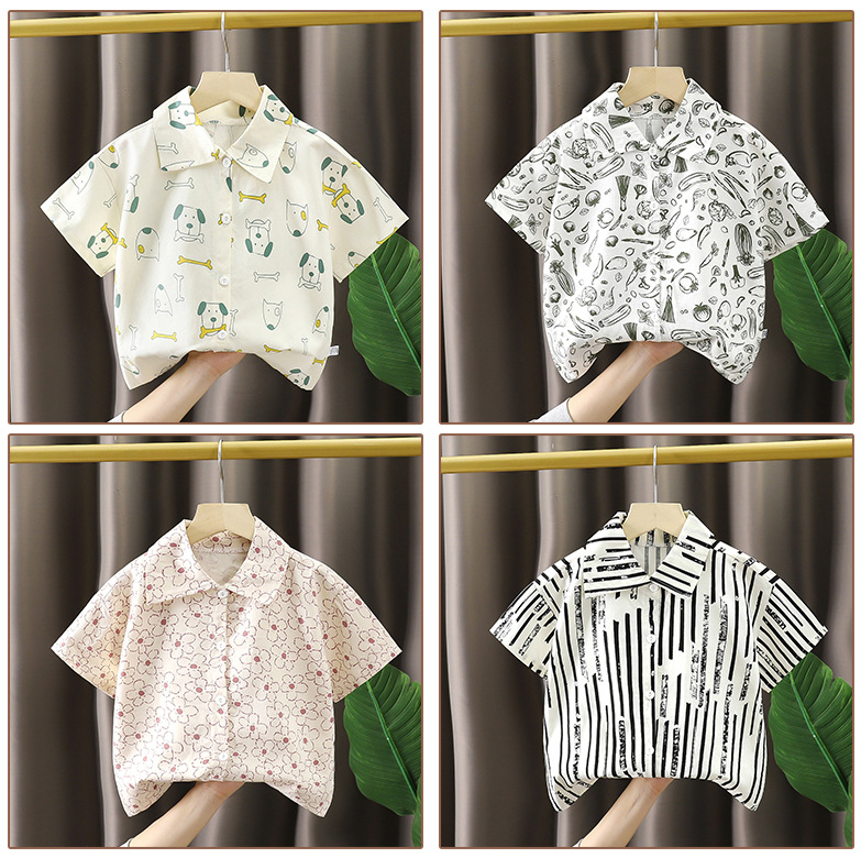 Camisas infantiles de verano nuevas camisas de verano para niños Cardigan 2025 camisas de manga corta delgadas de algodón para niños de verano