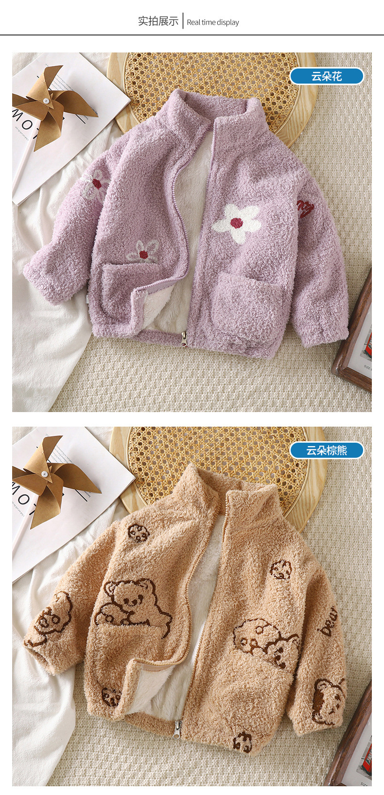 Abrigo de primavera y otoño para Niños y Niñas Ropa de otoño cálido coral polar bebé otoño e invierno abrigo forrado de lana ropa para niños al por mayor