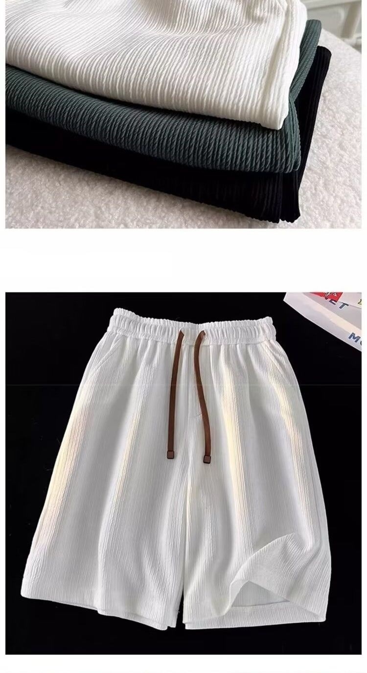 Camisas, menos ropa, pliegues de gran tamaño, seda de hielo, pantalones cortos de secado rápido, pantalones finos de verano para hombres, pantalones de playa, deportes sueltos y ocio