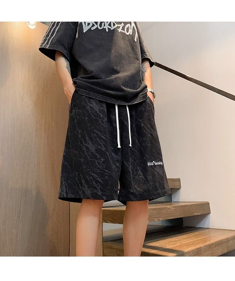 Camisas menos ropa verano nuevos pantalones cortos estadounidenses marca de moda para hombres estilo delgado sentido del diseño nicho holgado pantalones deportivos de gran tamaño