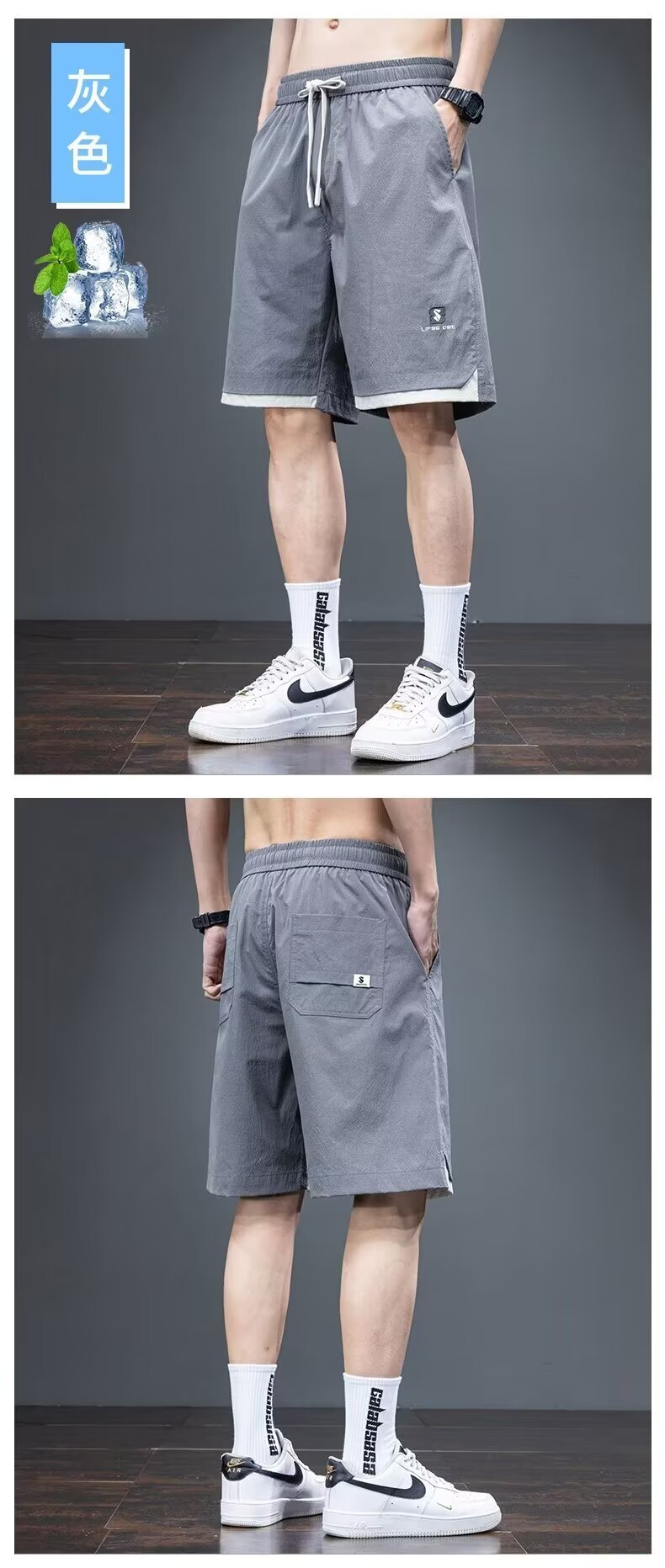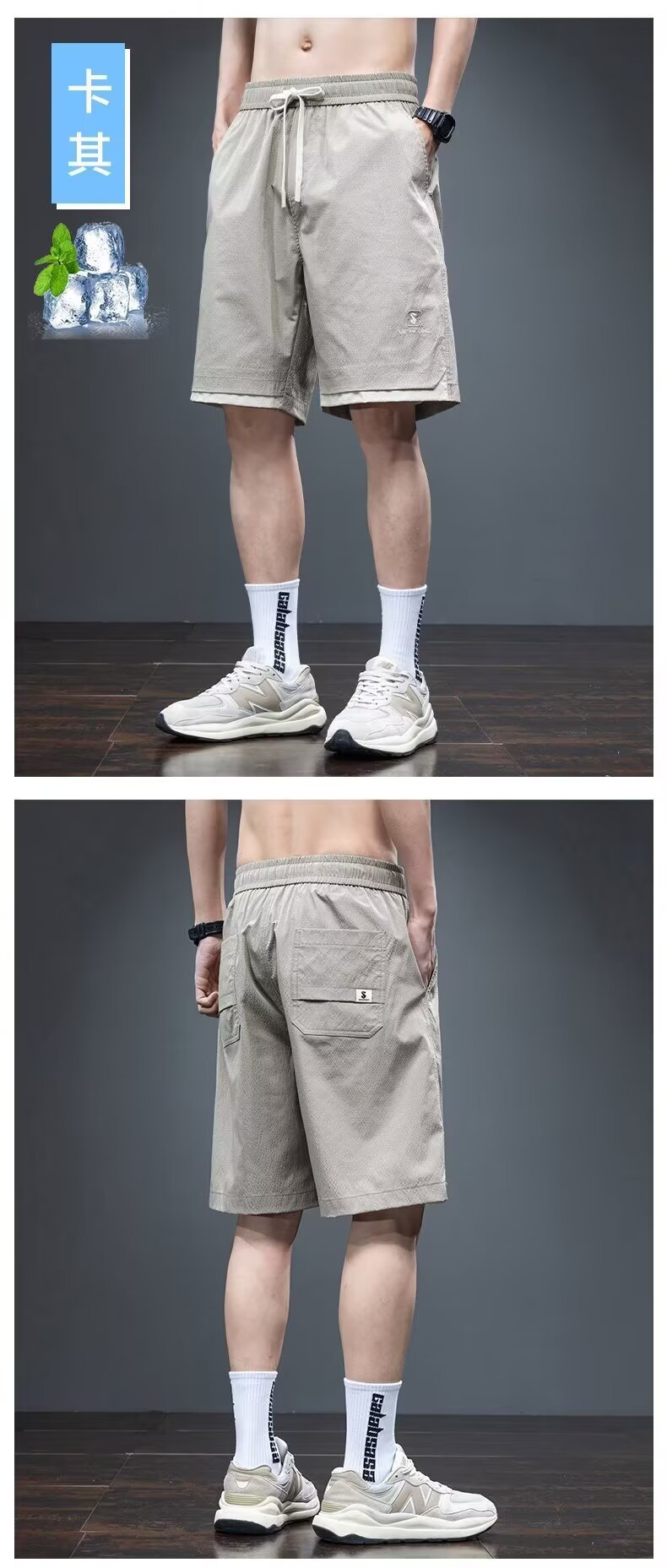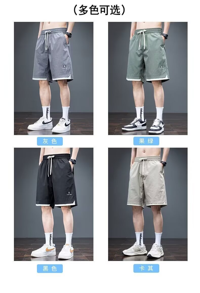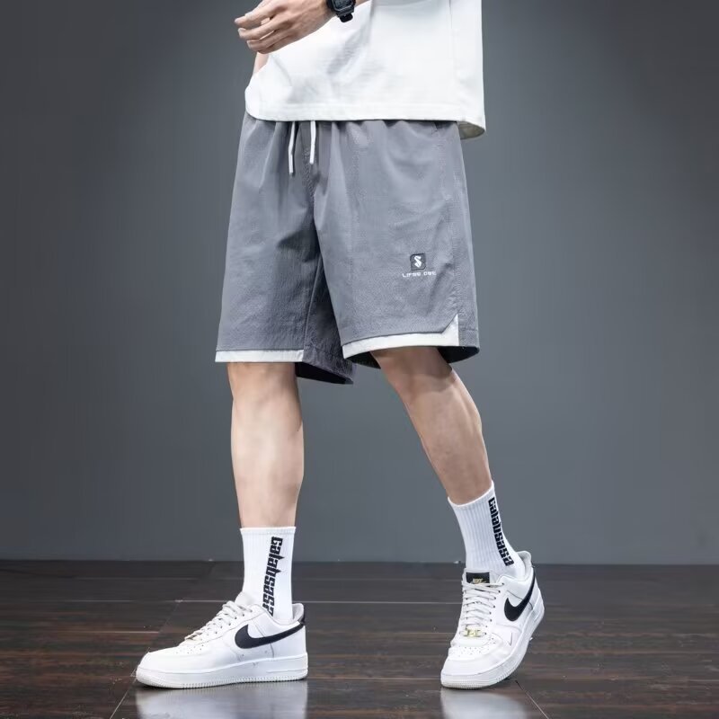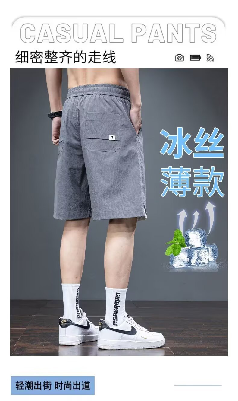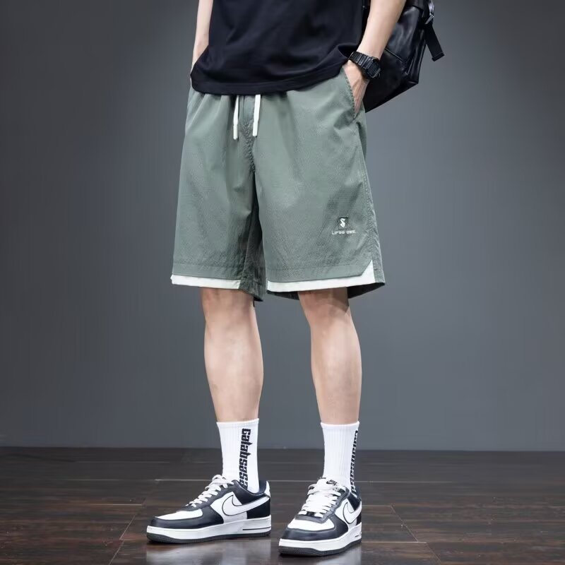 Camisa menos ropa pantalones cortos casuales tarjeta de gasa de verano para hombres lavado cintura elástica cordón pantalones de playa sueltos pantalones de cinco puntos