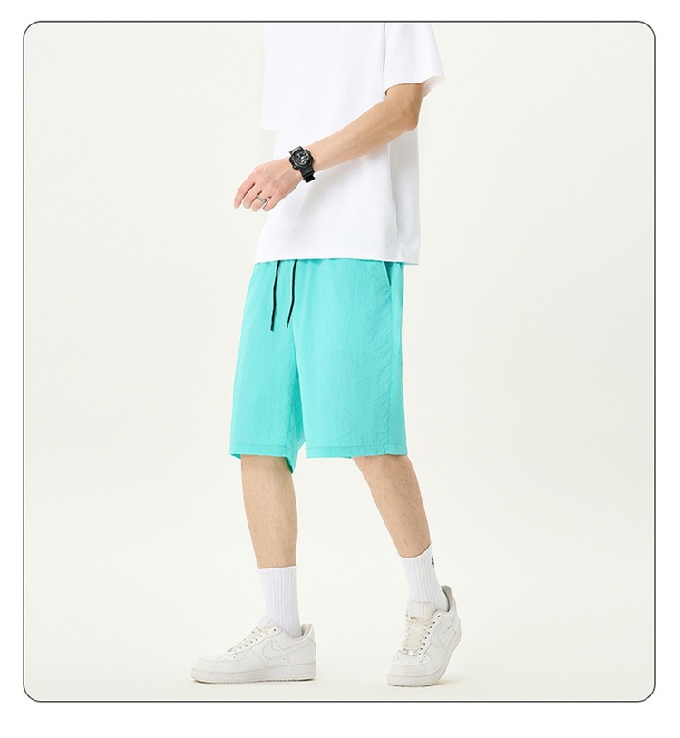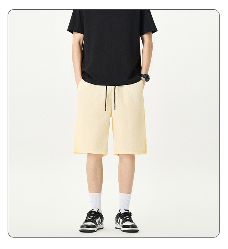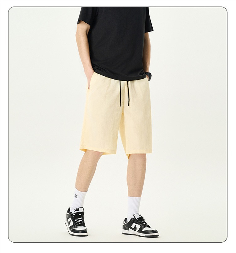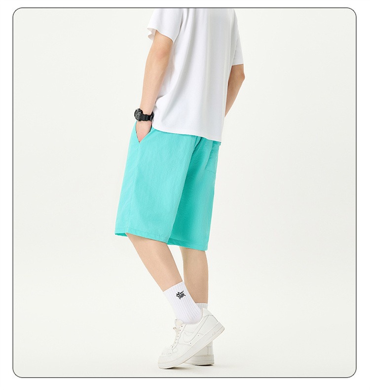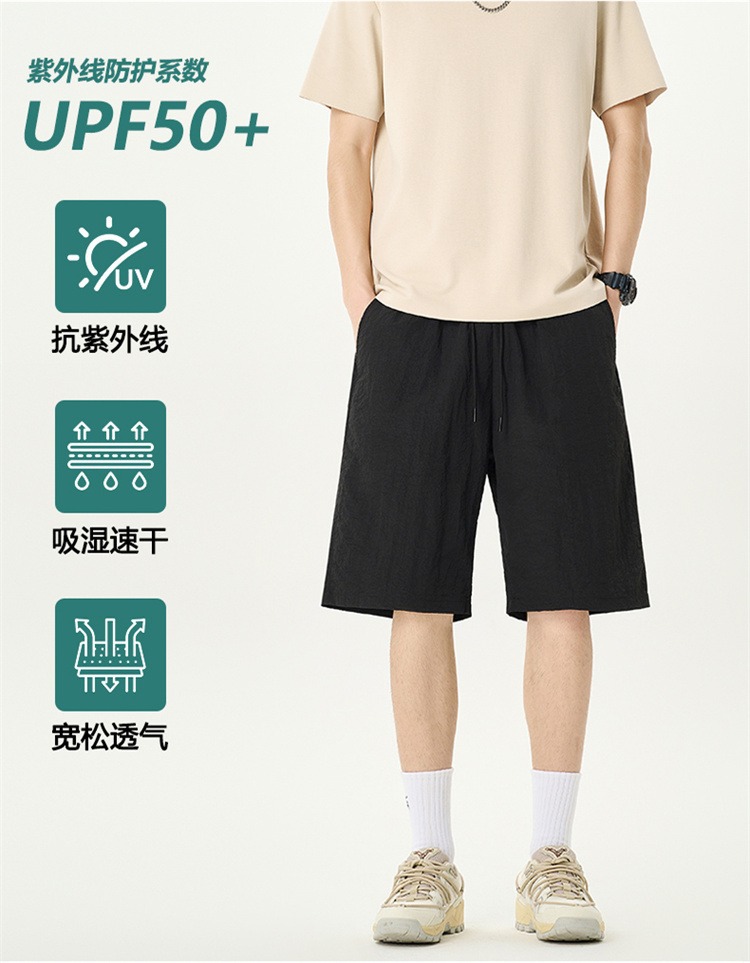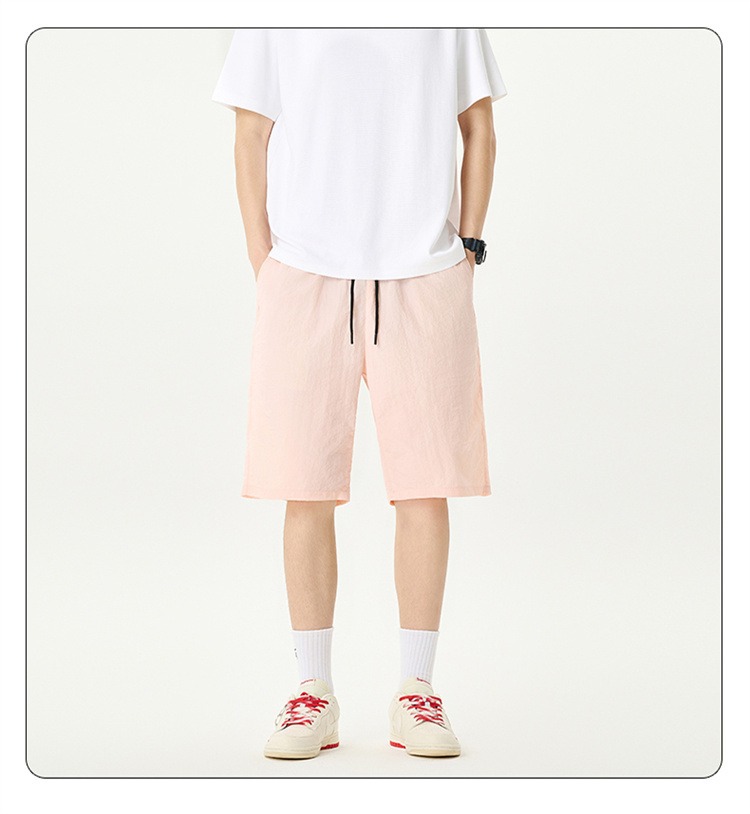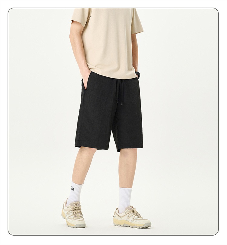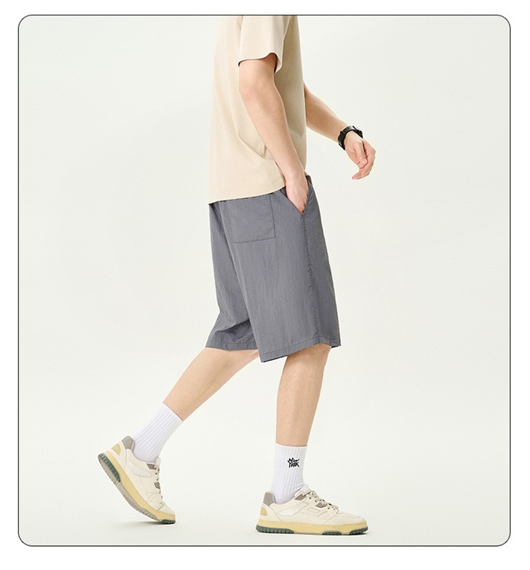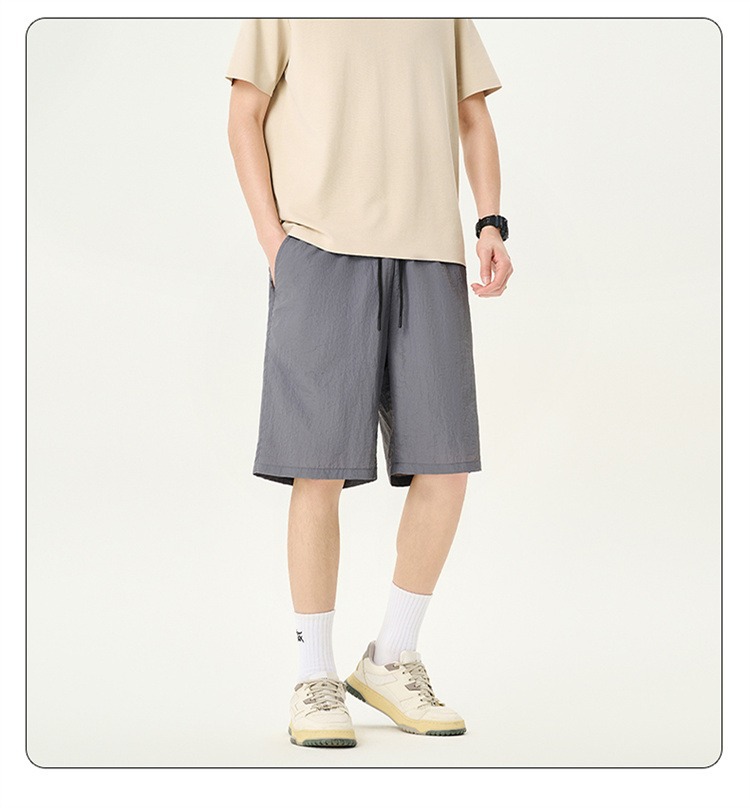 Camisas y menos ropa pantalones cortos casuales de verano seda de hielo para hombres, transpirable y de secado rápido, pantalones de cinco puntos sueltos para correr en deportes callejeros fritos