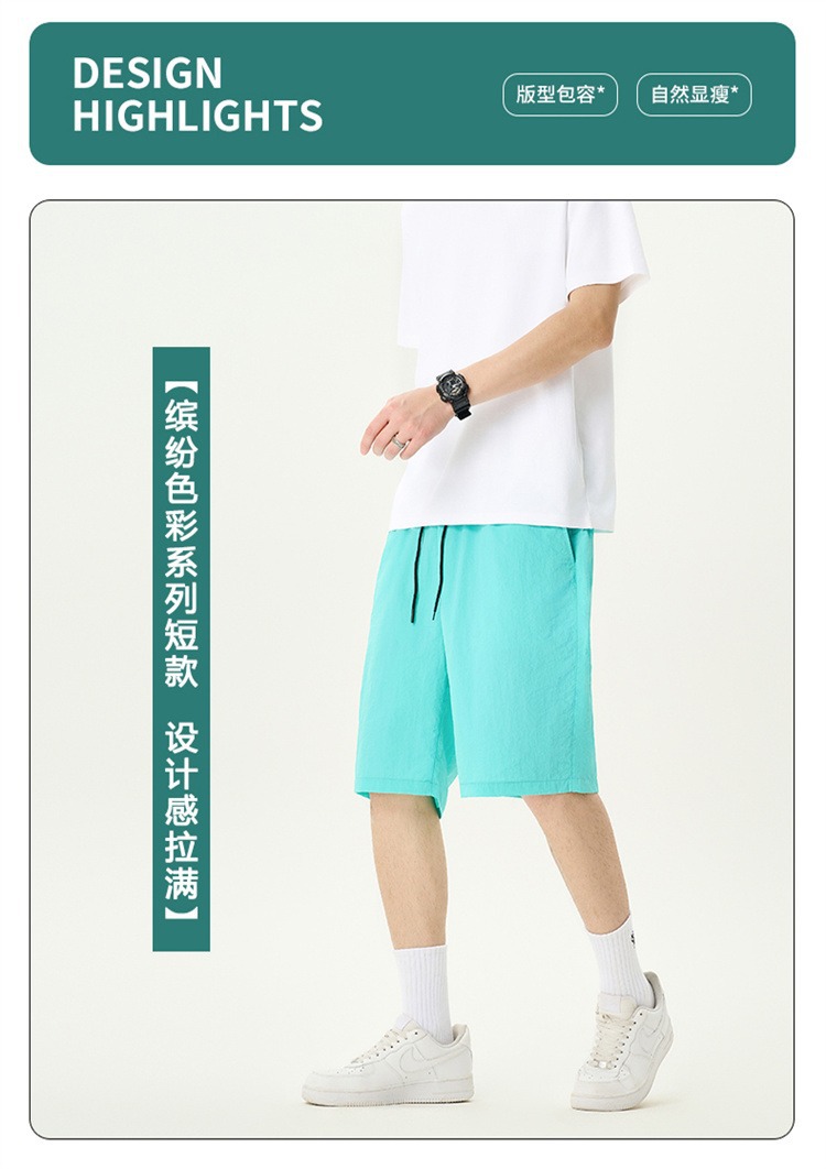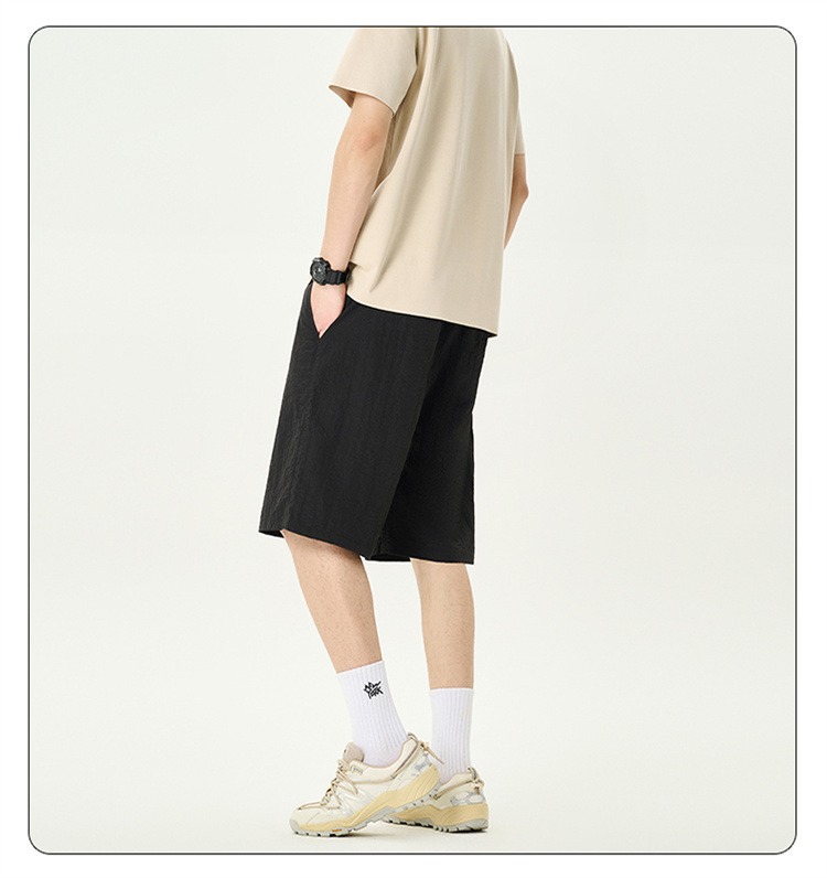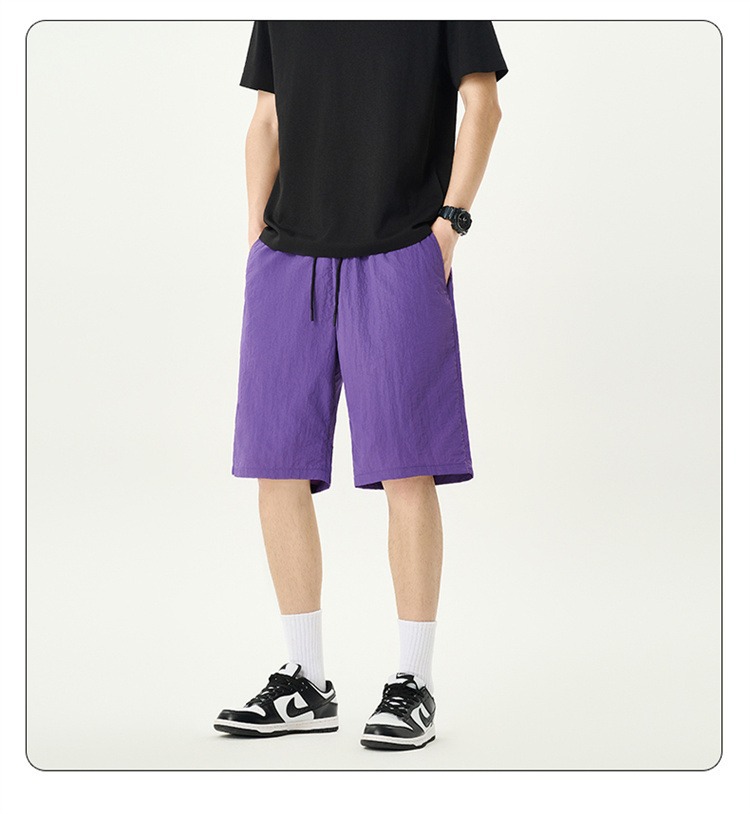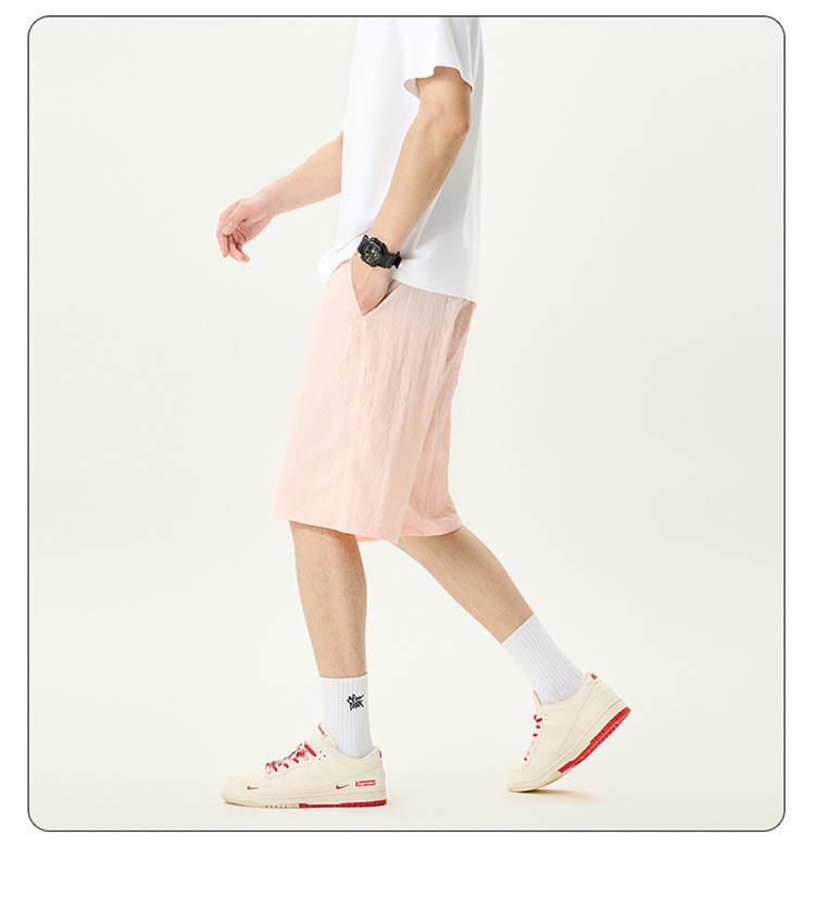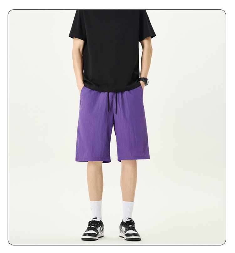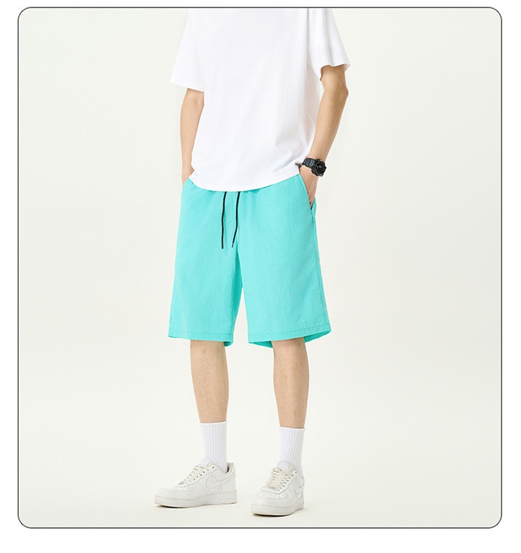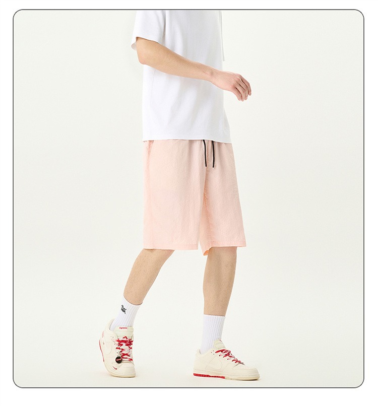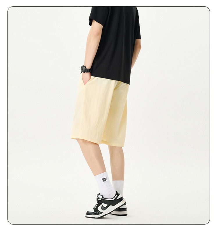 Camisas y menos ropa pantalones cortos casuales de verano seda de hielo para hombres, transpirable y de secado rápido, pantalones de cinco puntos sueltos para correr en deportes callejeros fritos